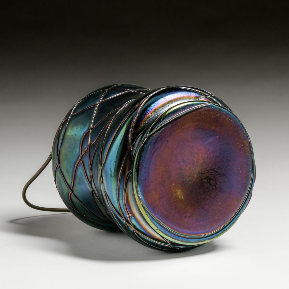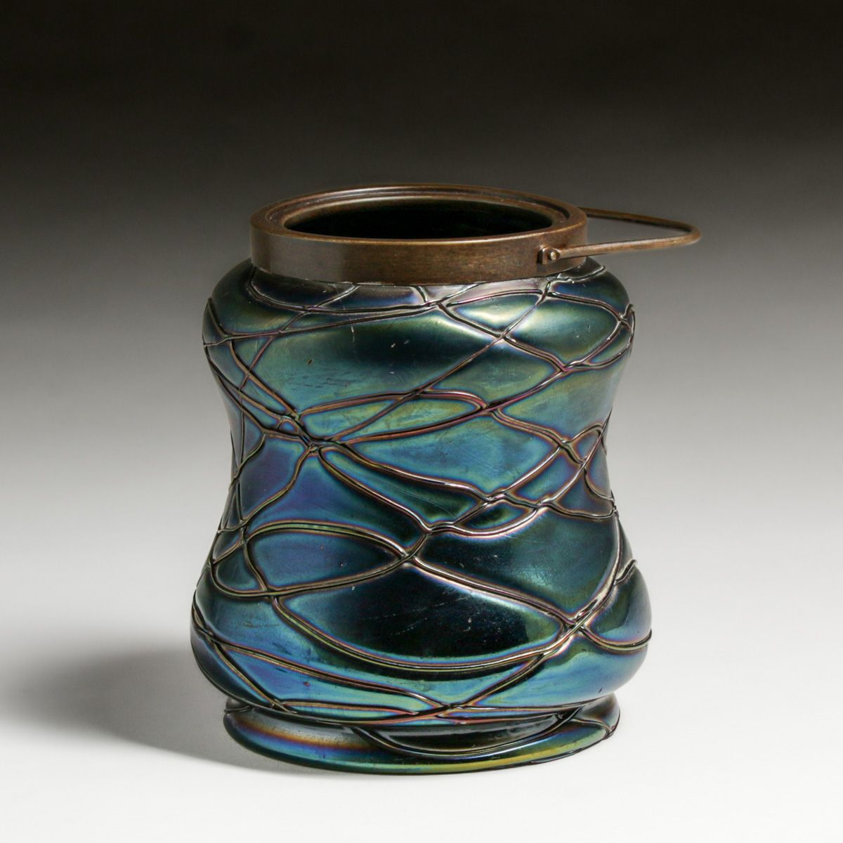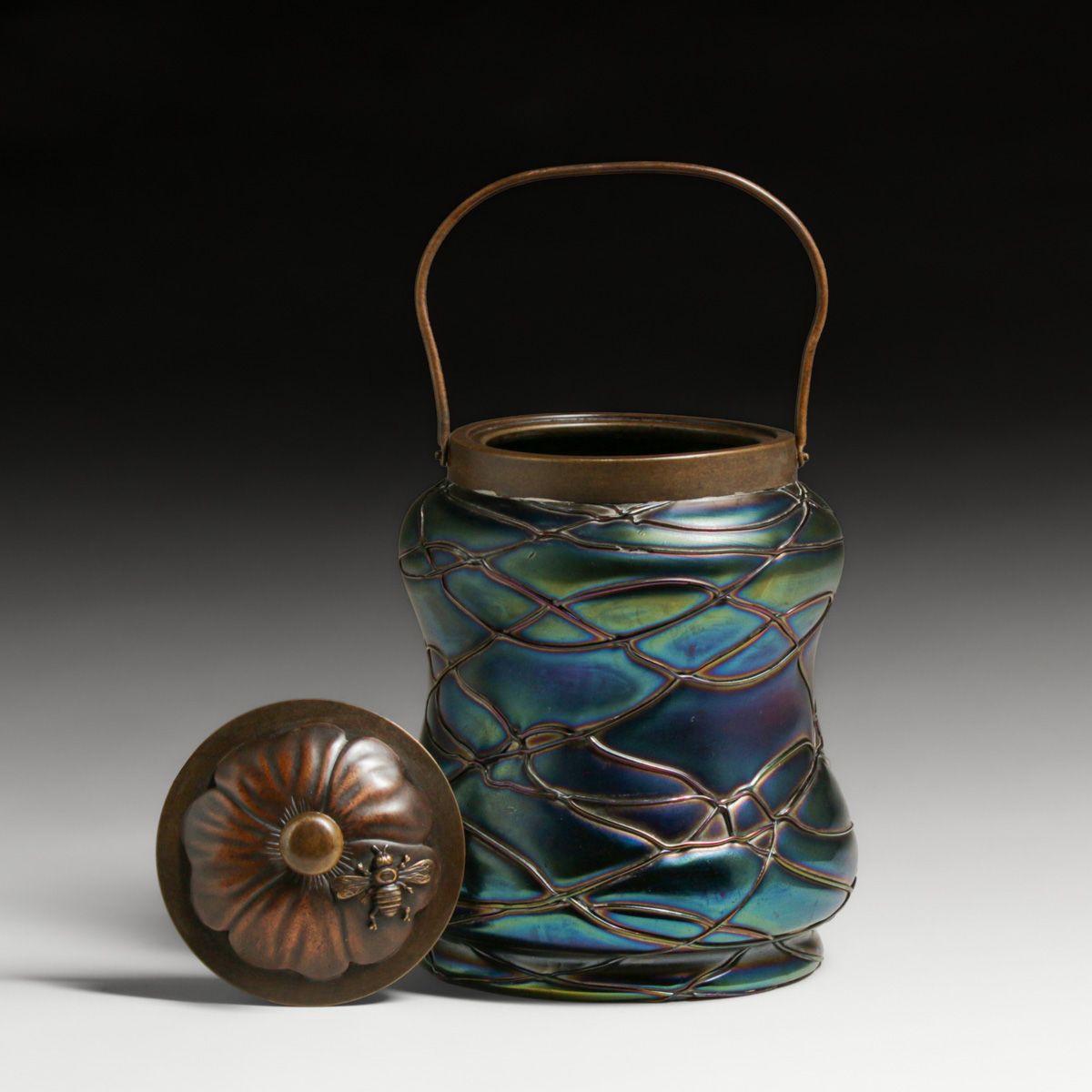 Loetz Bohemian Art Glass Biscuit Jar c1910. Unsigned. Loetz glass in perfect condition. 9.5"h x 5.5"d