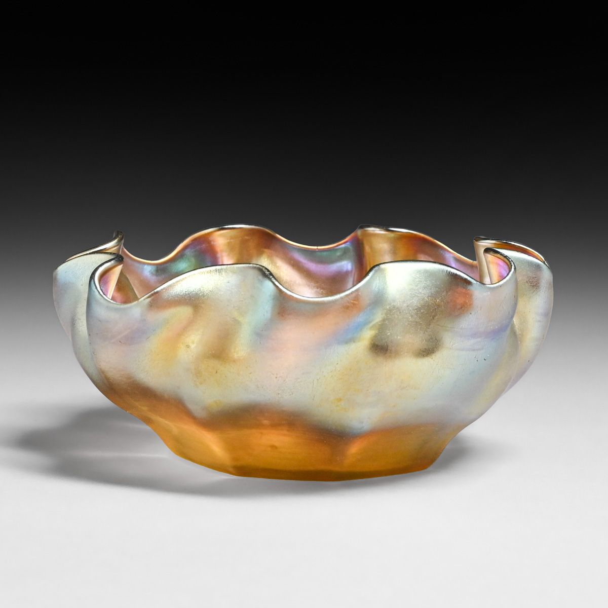 - Tiffany Favile Glass Ruffled Rim Bowl c1910