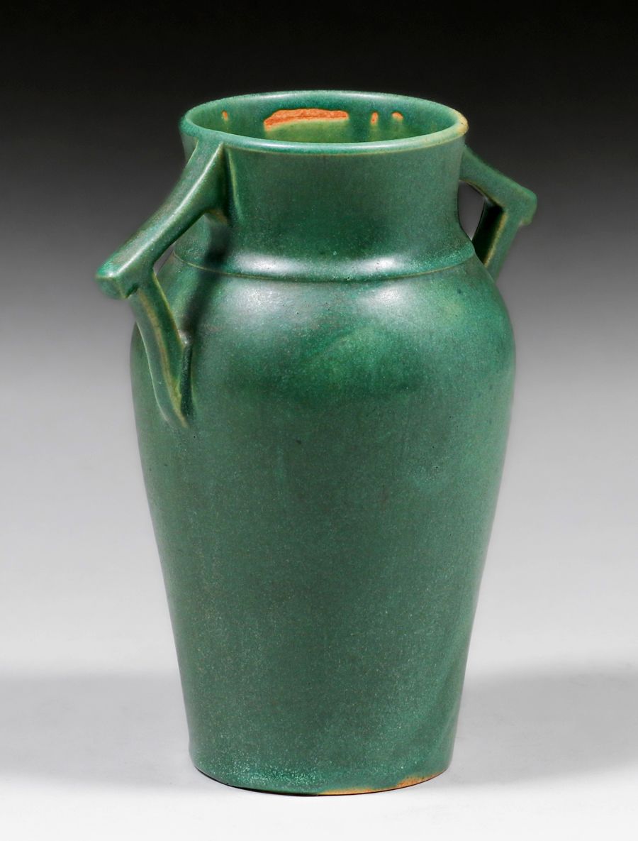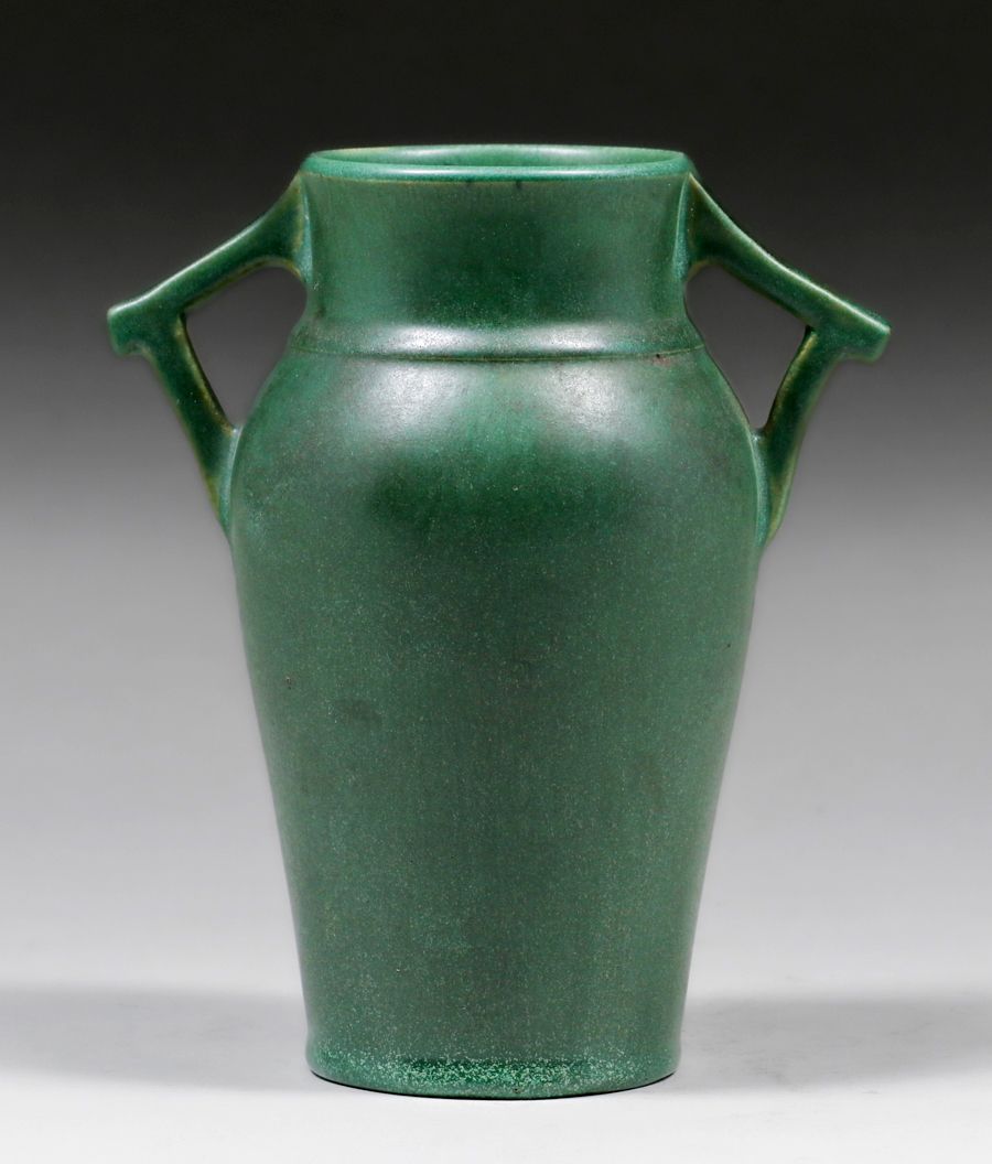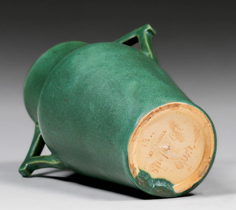 - Alberhill Pottery – Alexander W. Robertson Matte Green Two-Handled Vase 1914