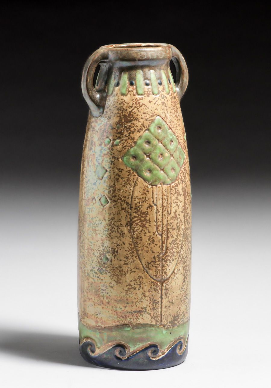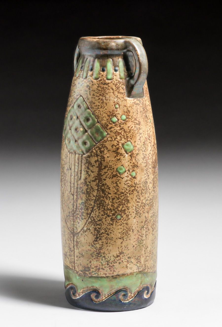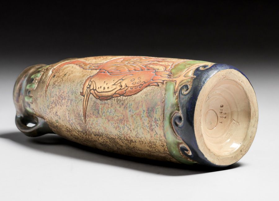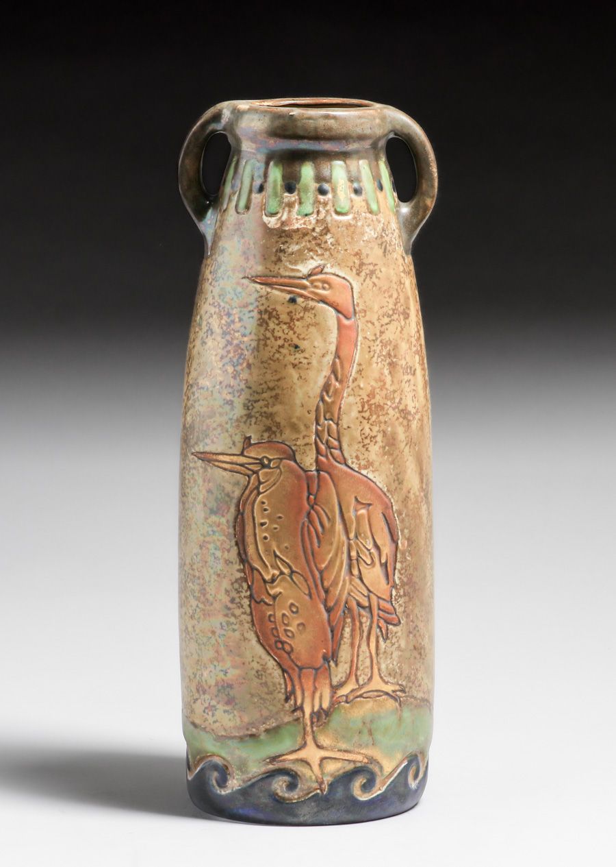 - Amphora Pottery Campina Enameled Two-Handled Heron Vase c1910