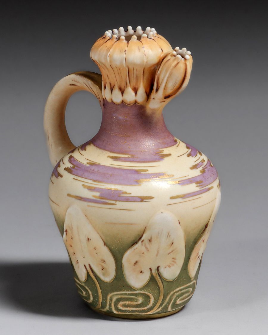 - Amphora Pottery Lily Pad Decorated Pitcher c1900
