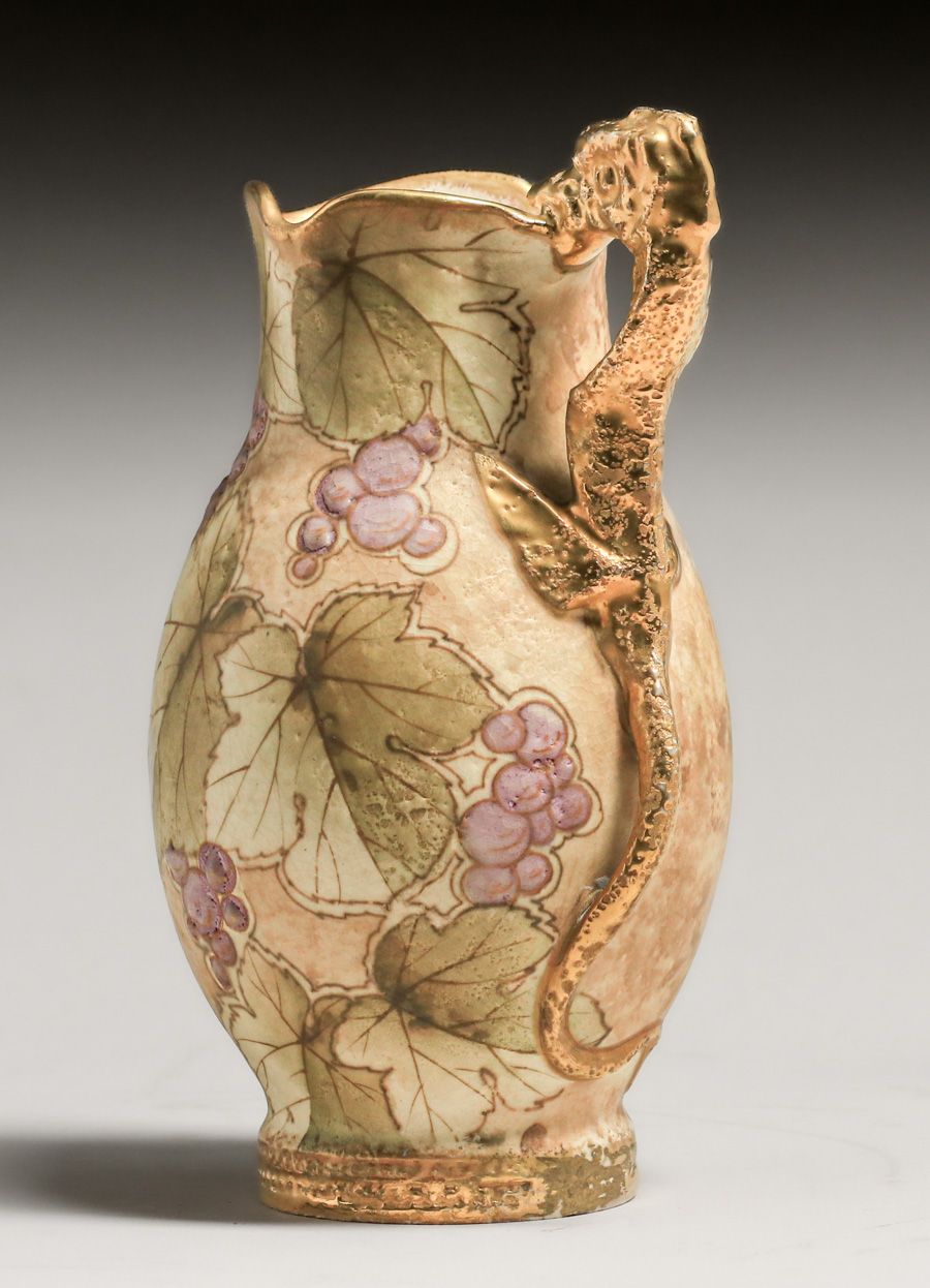- Amphora Teplitz Lizard Handled Pitcher c1900s