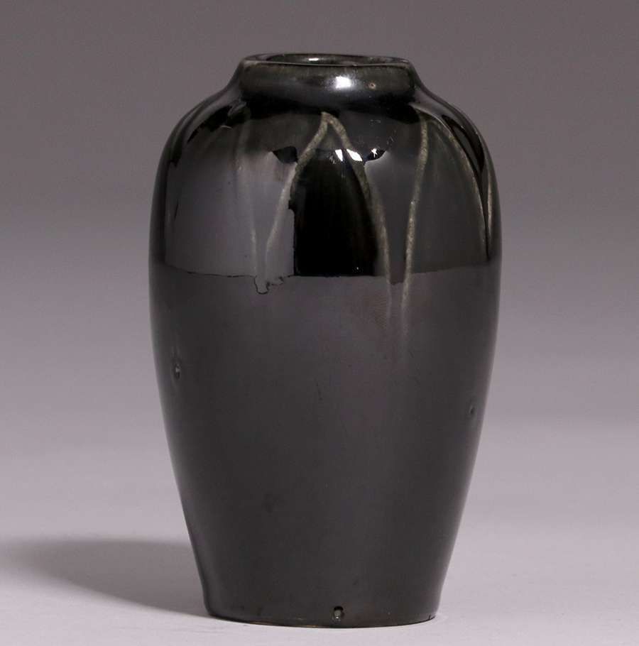 Arequipa Pottery - Fairfax, CA Mirror Black Vase 1912. Several small glaze bubbles, otherwise perfect condition. 4.25"h x 2.5"d SOLD