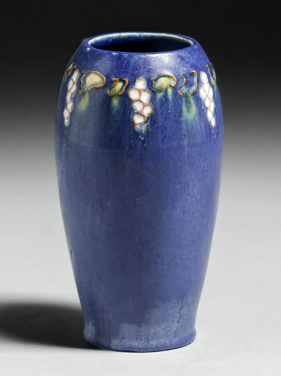 - Arequipa Pottery Frederick Rhead Squeeze-Bag Decorated Grape Cluster Vase 1912