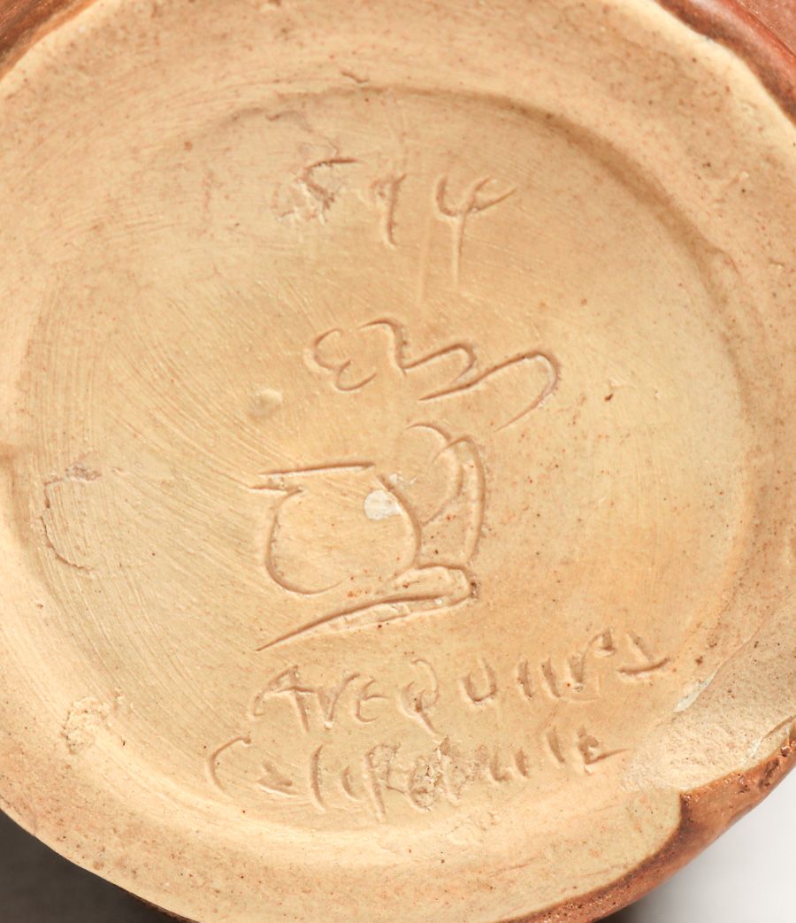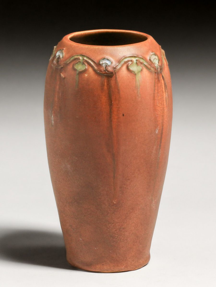 Arequipa Pottery Squeeze-Bag Decorated Spades Vase c1911-1912. Signed. Invisible professional restoration to tight hairline, otherwise perfect condition. 6"h x 3 1/8"d $12,000