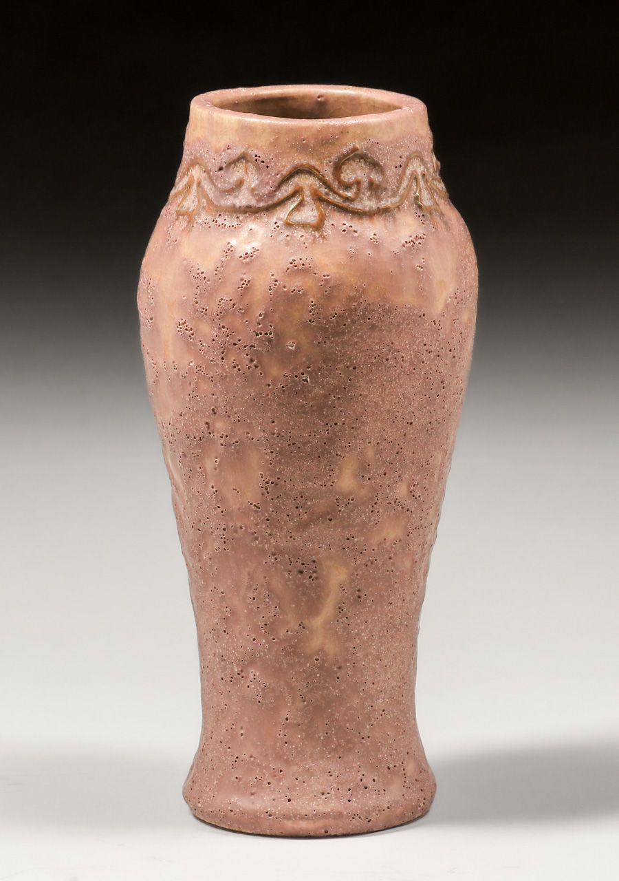 Arequipa Pottery Squeeze-Bag Volcanic Matte Brown Vase c1912. Signed. Rim slightly uneven, otherwise perfect condition. 8″h x 3.5"d $12,000