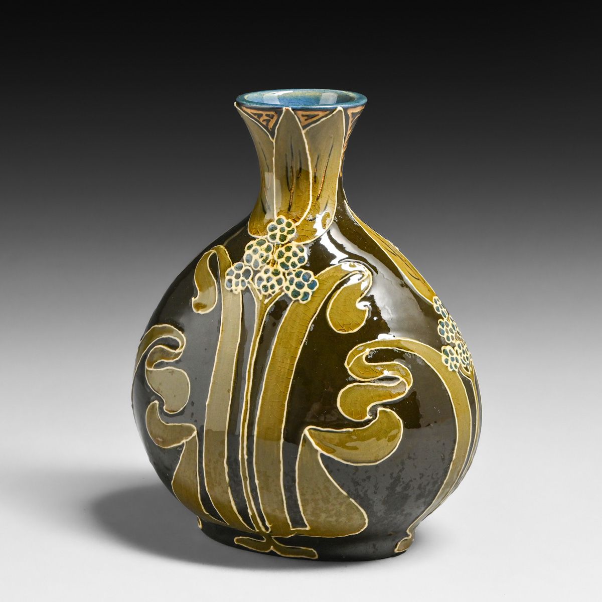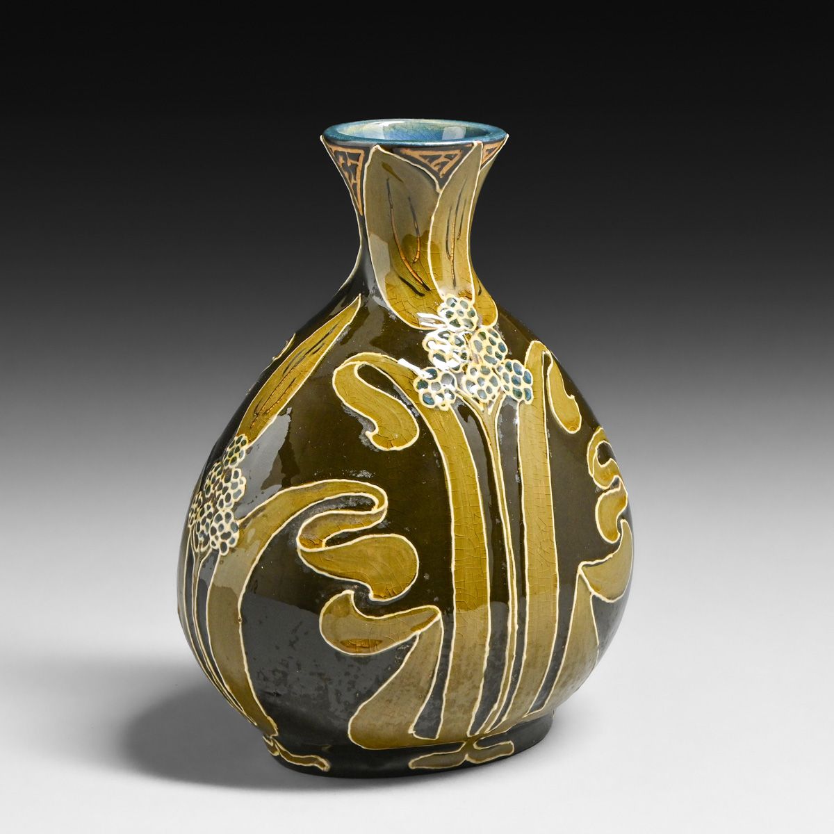 - Avon Faience Co - Wheeling, WV William Jervis Frederick Hurten Rhead Squeeze-Bag Vase c1902-1905