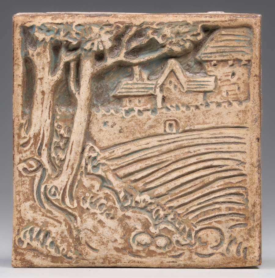 Batchelder - Los Angeles Scenic Tile c1920s. Signature covered in old grout. Excellent condition for having been previously removed. 3.75" x 3.75" SOLD