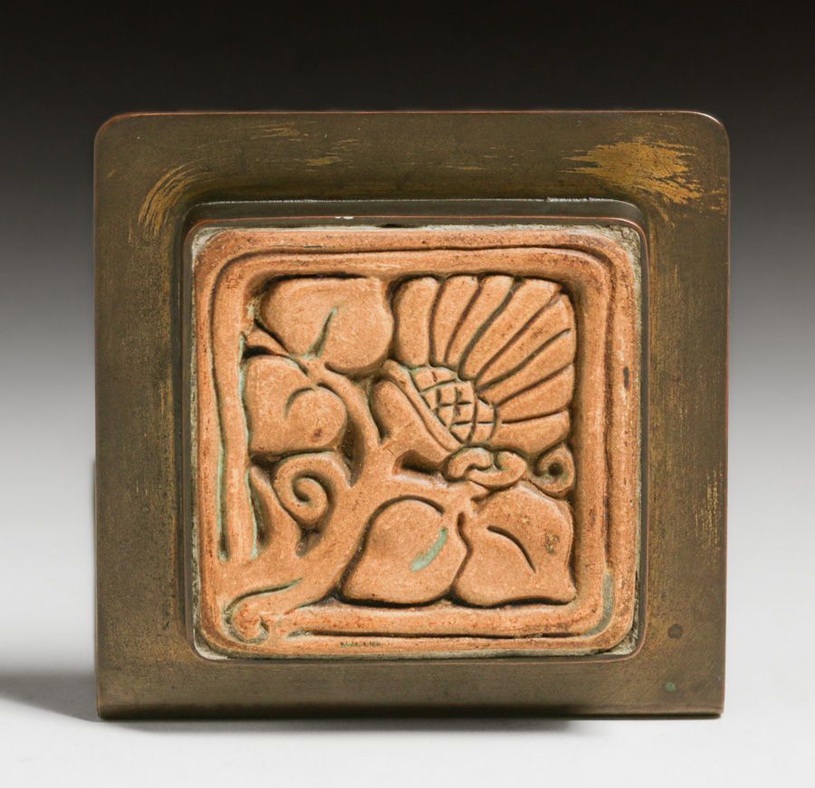 Batchelder Tile – Potter Studios Bookends c1920s. Signed. Excellent original patina. 3.25″h x 3.25″w