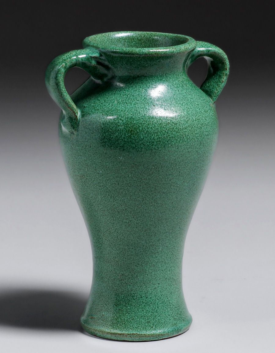 Early Bauer Matt Carlton Two-Handled "Rebekah" Vase c1910s. Unsigned. Perfect condition. 8"h x 6"w x 4.5"d SOLD
