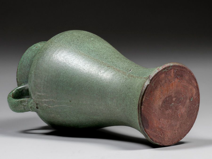 - Early Bauer "Rebekah" Matte Green Two-Handled Matt Carlton Vase c1915