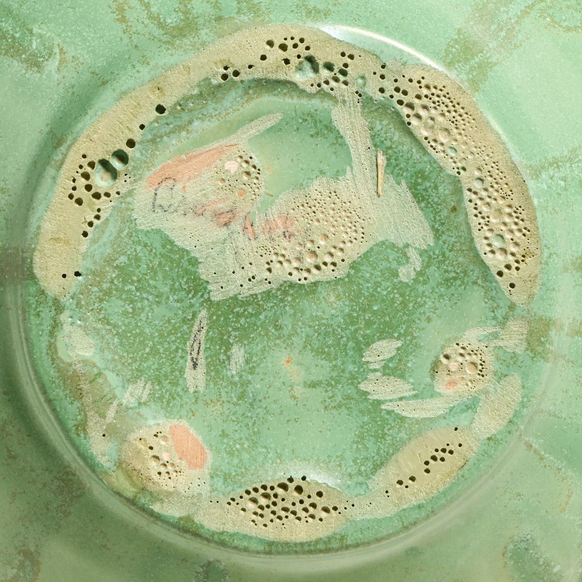 Byrdcliffe Art Pottery Hand-Carved Bowl c1903-1910. Mostly glazed over "Byrdcliffe" incised signature. The "By" is partially visible. Perfect condition. 8"d x 3"