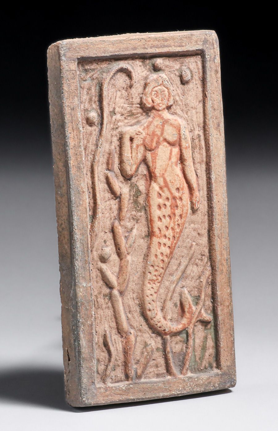 Cal Art - Richmond Mermaid Tile c1920s. Unsigned. A couple of small edge chips to back. Front of tile in perfect condition. 8.5"h x 4"w SOLD