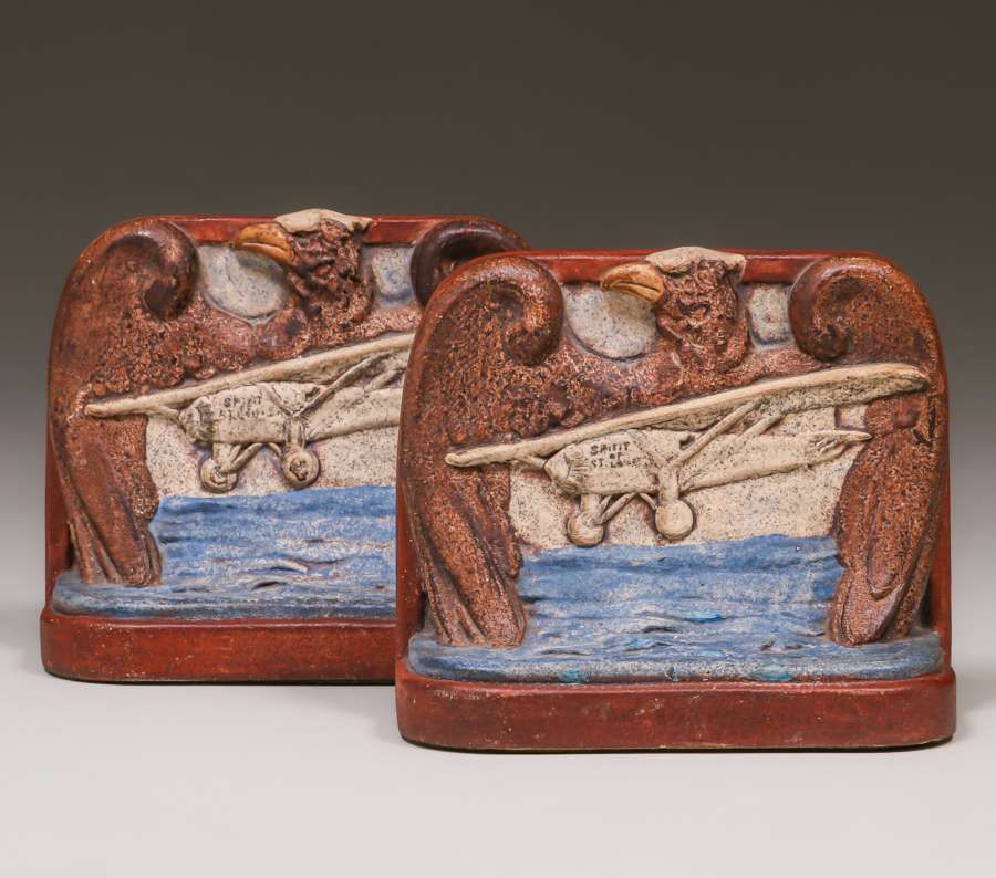 - Cal Art Tile Co – Richmond, CA Ceramic “Spirit of St Louis” Bookends c1927