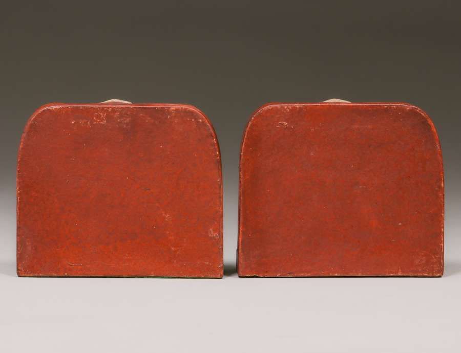 Cal Art Tile Co – Richmond, CA Ceramic “Spirit of St Louis” Bookends c1927. Unsigned. A couple of tiny flecks on base, otherwise perfect condition. 6.75″w x 5.75″h x 2.75″d SOLD