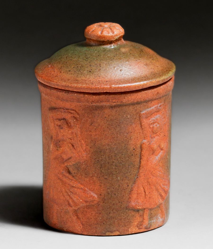 California Art Tile Co - Richmond Covered Jar c1920s. Unsigned. Perfect condition. 5”h x 3.75”d SOLD