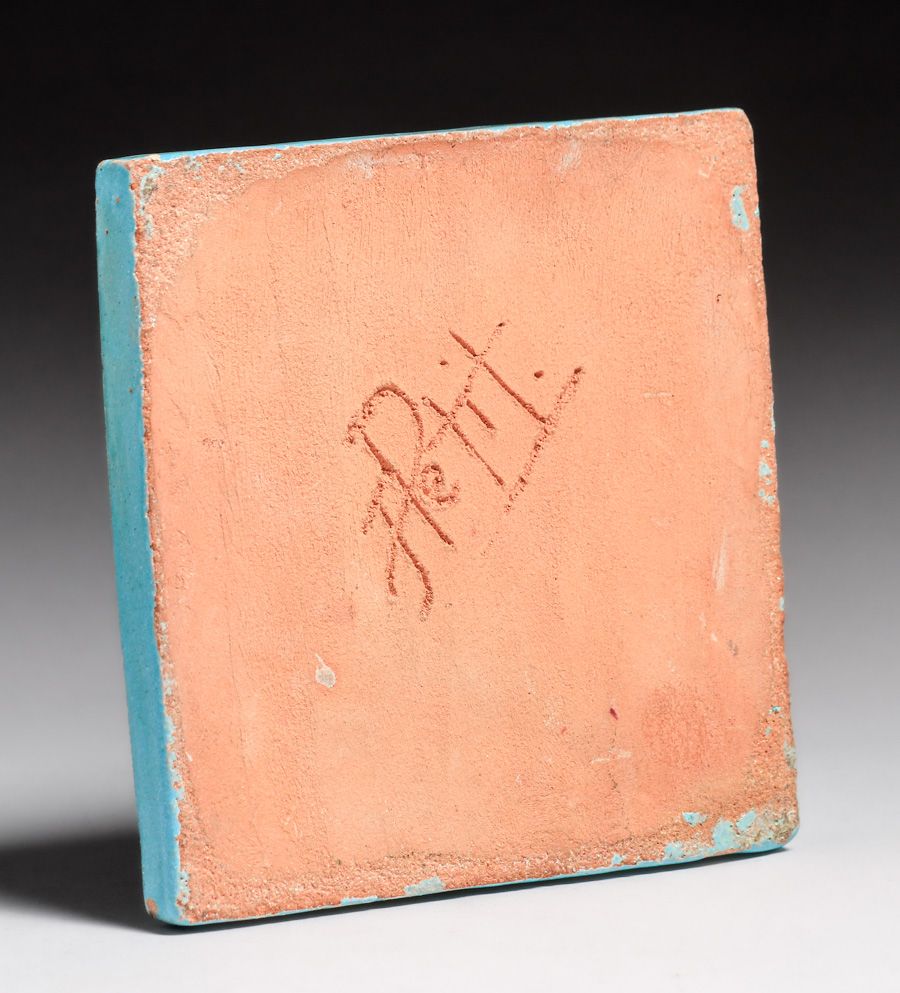 California Faience - Berkeley High School Student Jester Tile c1930s. Signed "A Petit". Perfect condition. 6" x 6" SOLD