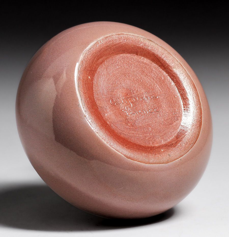 California Faience Brown & Yellow Closed Bowl c1920s. Signed. Perfect condition. From the Collection of Kirby Brown, author the California Faience Book. 6"d x 2.75"h SOLD