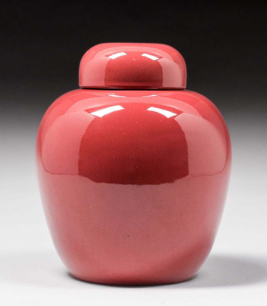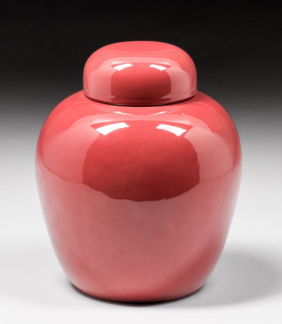 - California Faience Burgundy Covered Ginger Jar c1920s