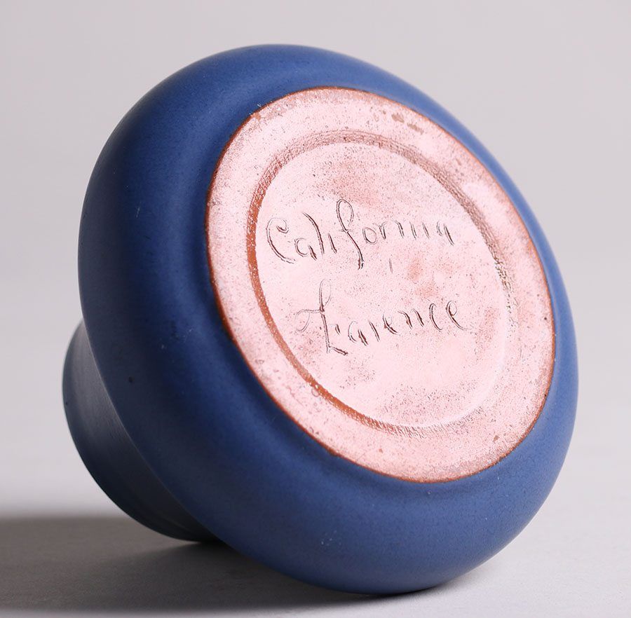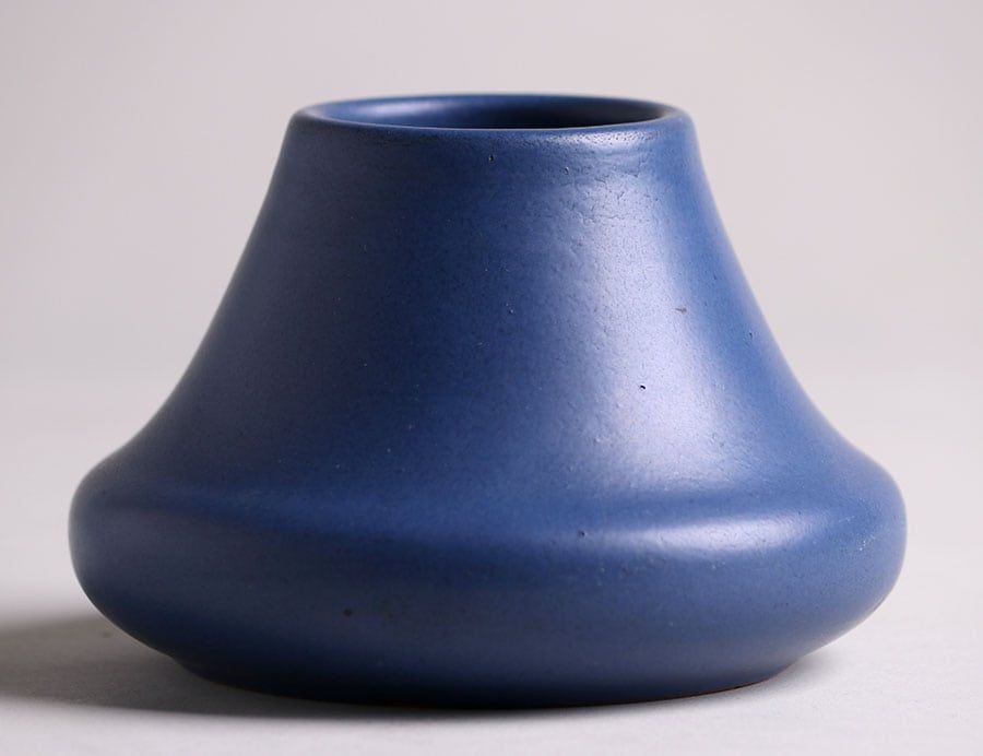 California Faience matte blue squat vase. Signed. Perfect condition. 3.5"h x 5"d SOLD
