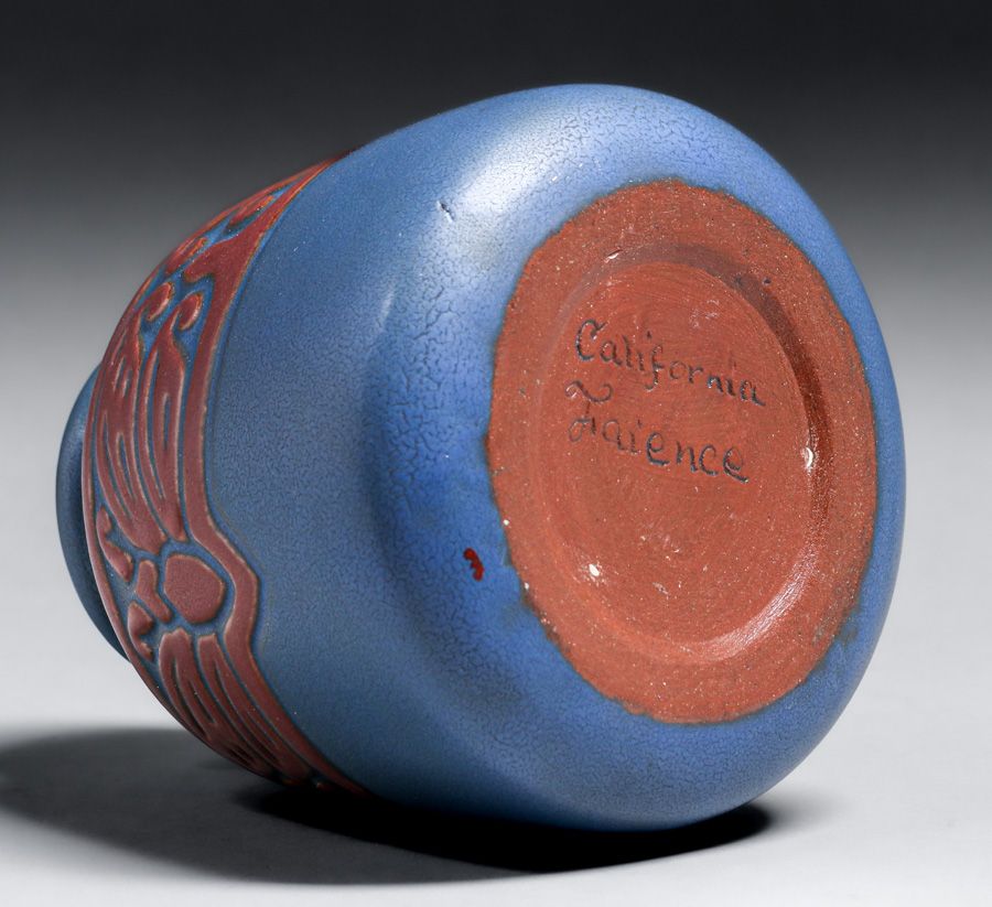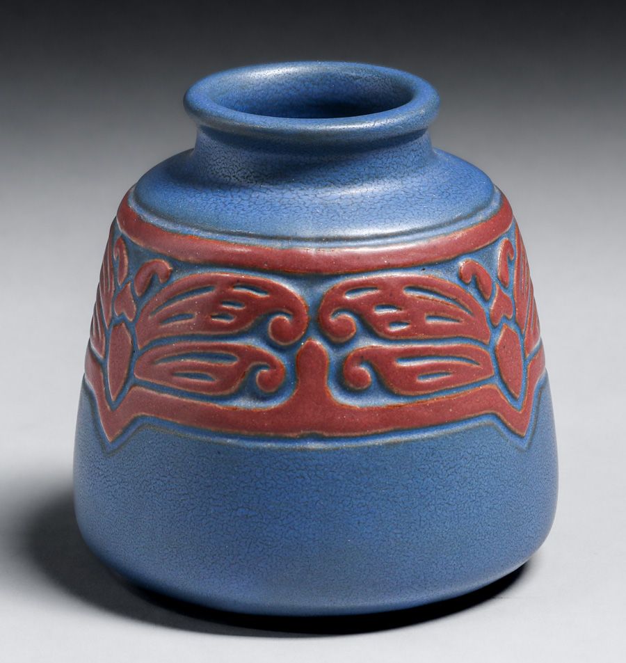 - California Faience Matte Glazed Moth Vase c1915-1920