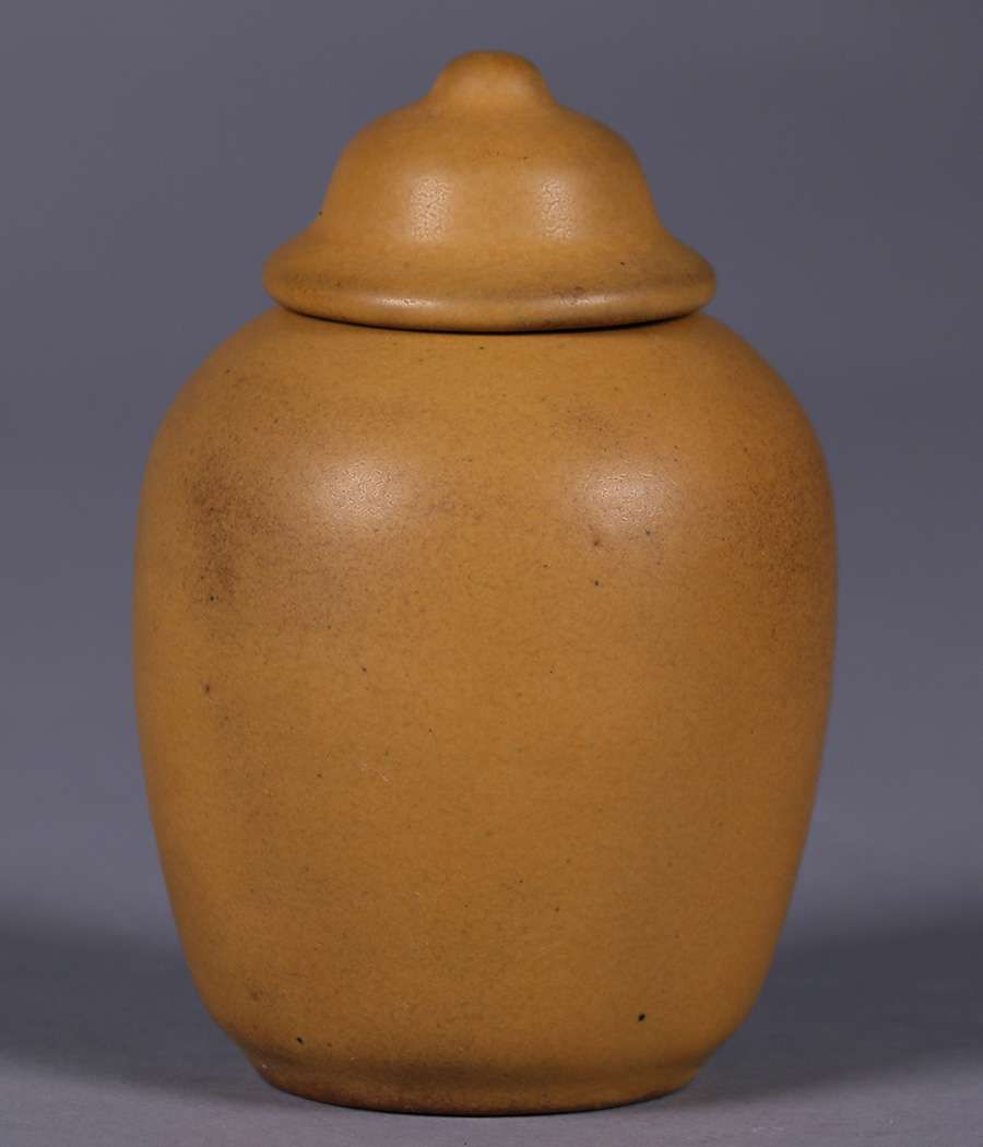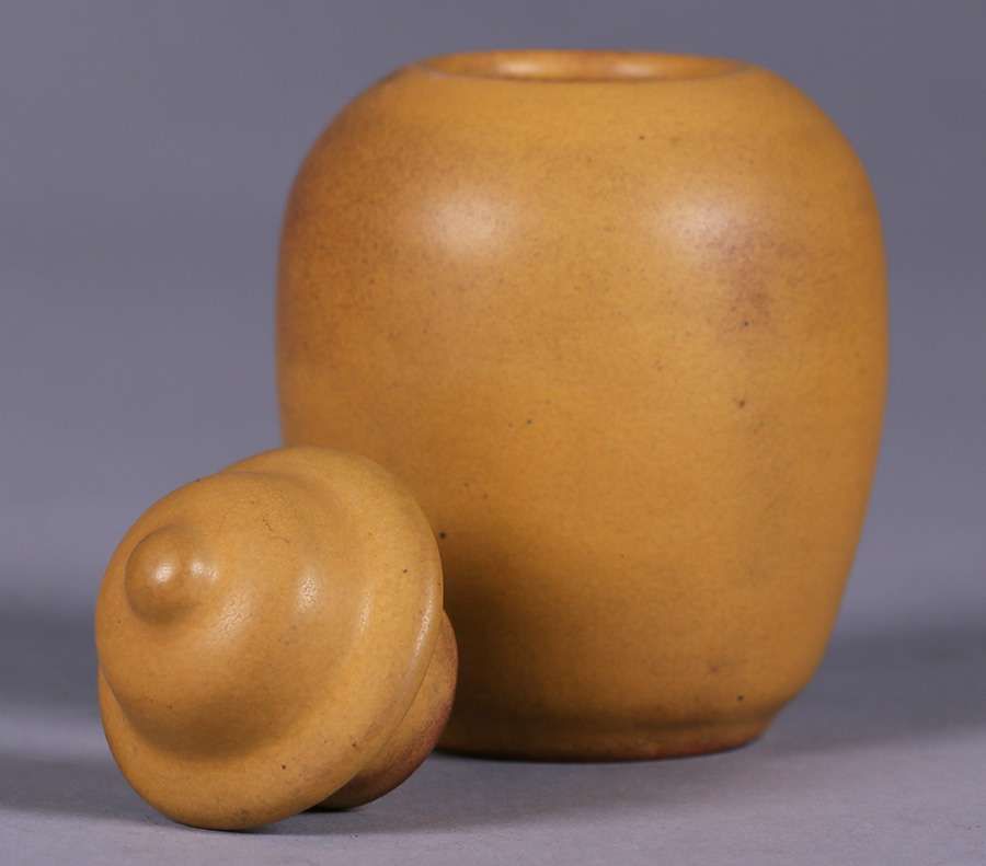 California Faience matte mustard covered vase. Signed. Perfect condition. 4.75"h x 3"d SOLD