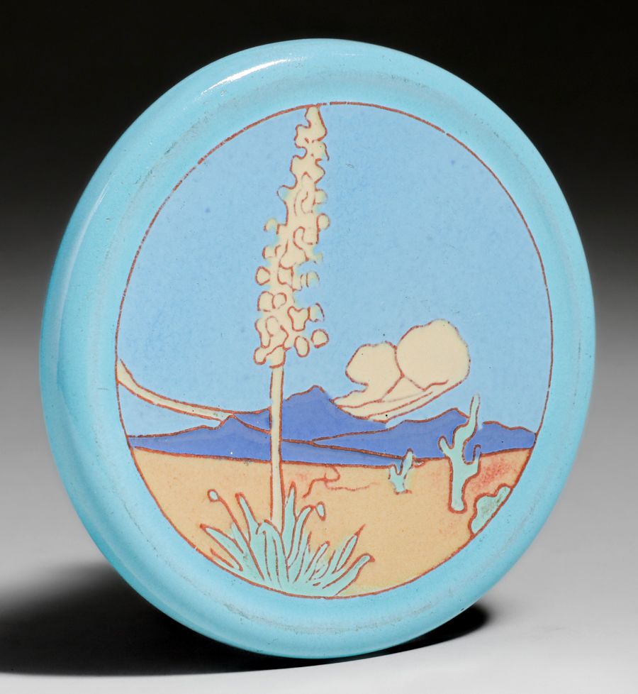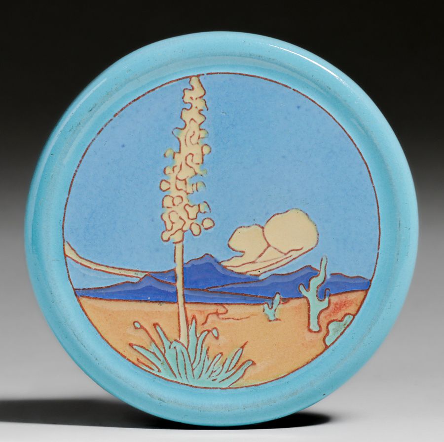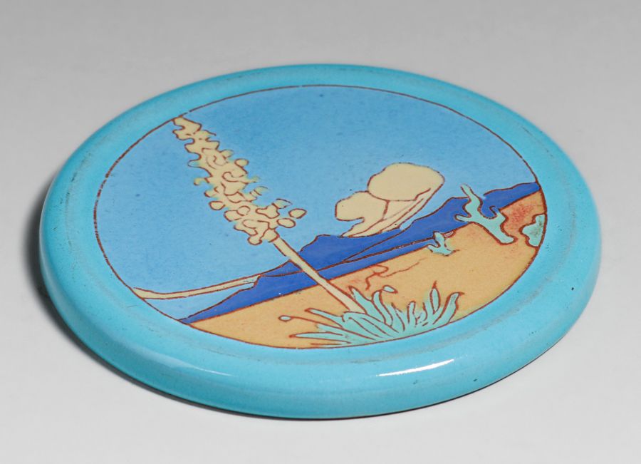California Faience Rare Yucca Plant tile c1920s. Signed. Perfect condition. 5.5″d SOLD