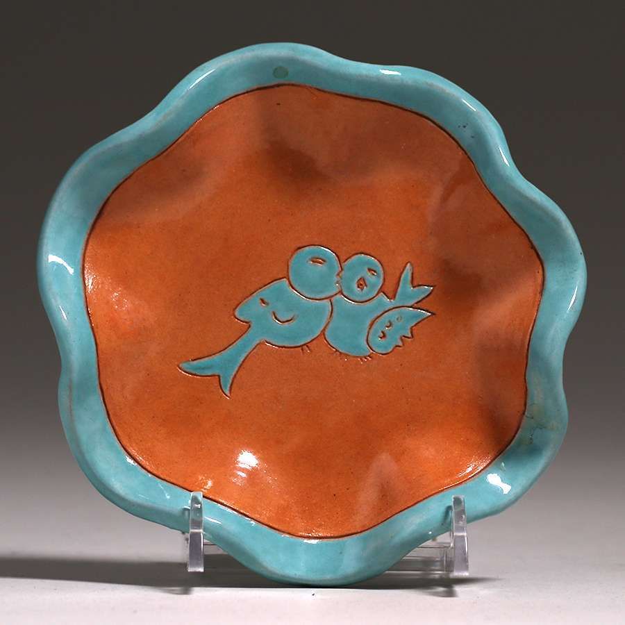 Unusual California Faience scalloped tray with two birds c1930s. Perfect condition. 5.5"d SOLD