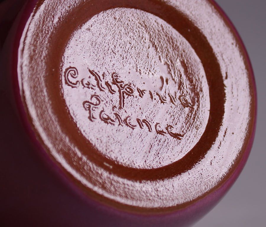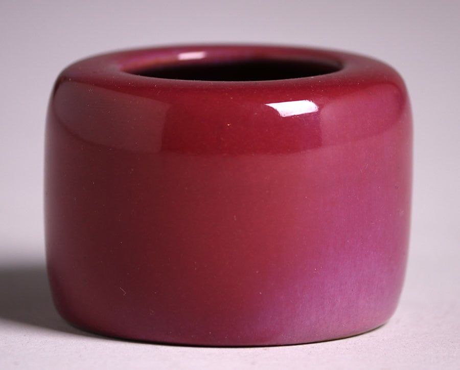 California Faience small vase with rich burgundy glaze. Signed. Perfect condition. 2"h x 2.5"d SOLD