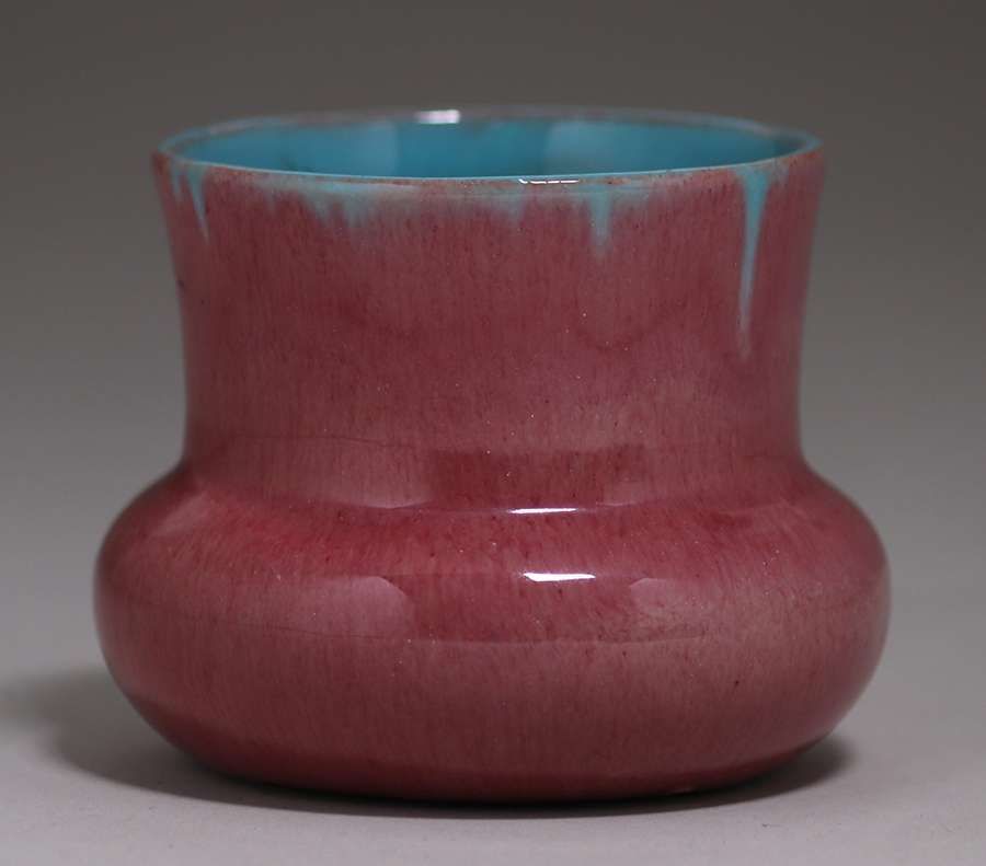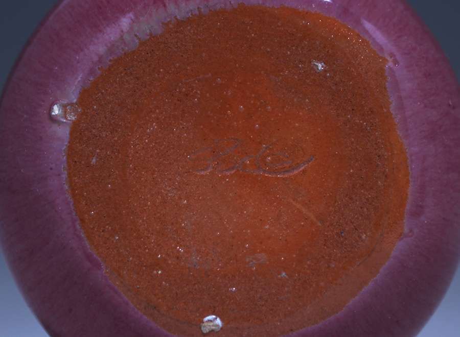 California Faience - Sorcha Boru (Claire Everett Jones Stewart) burgundy and turquoise vase c1930s. Signed "SBC". Perfect condition. Kirby Brown Collection. 2 3/8"h x 3"d SOLD
