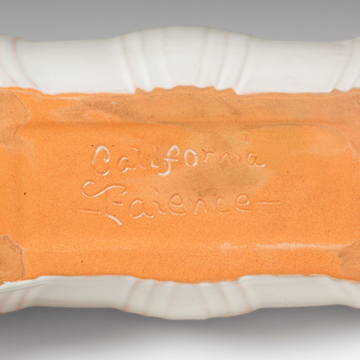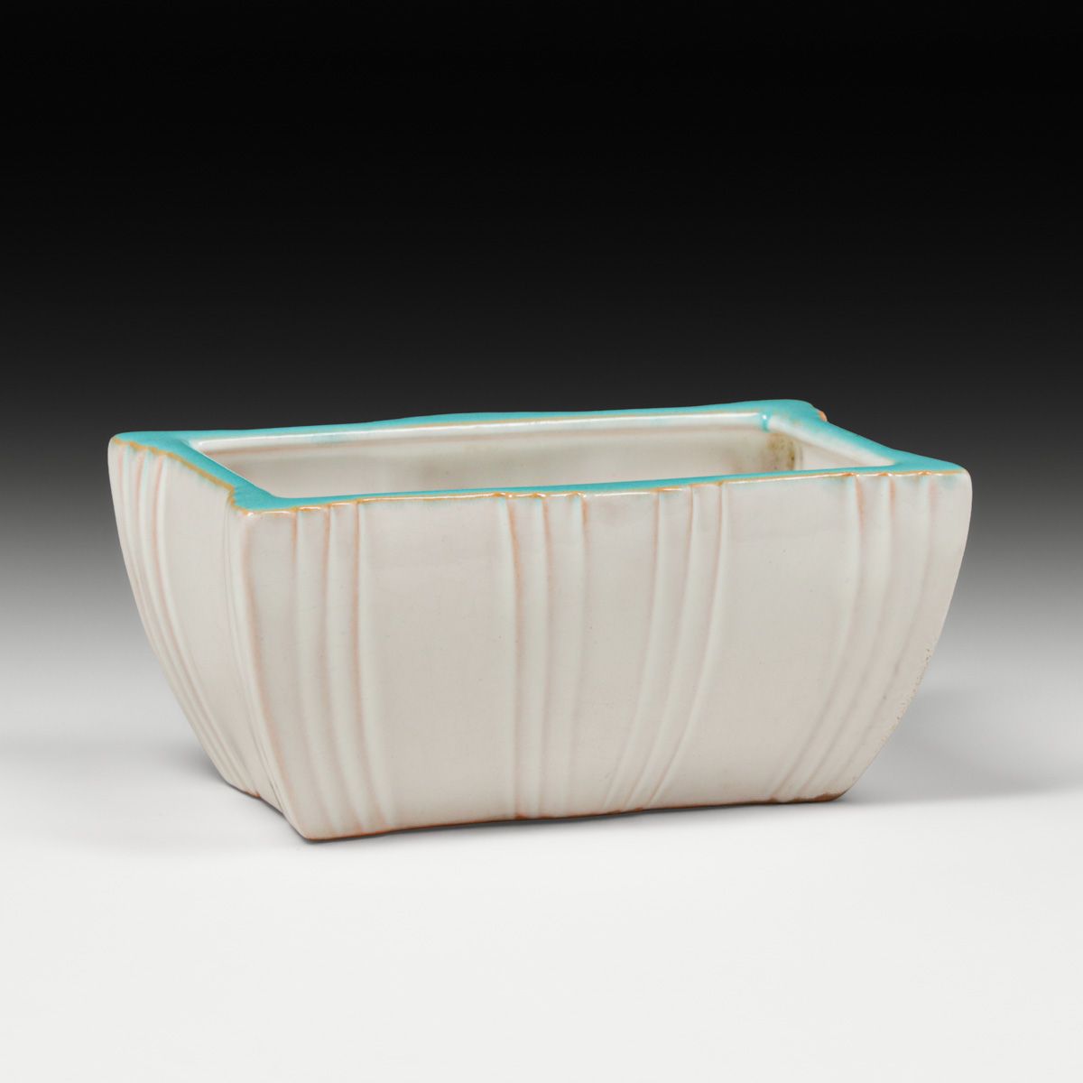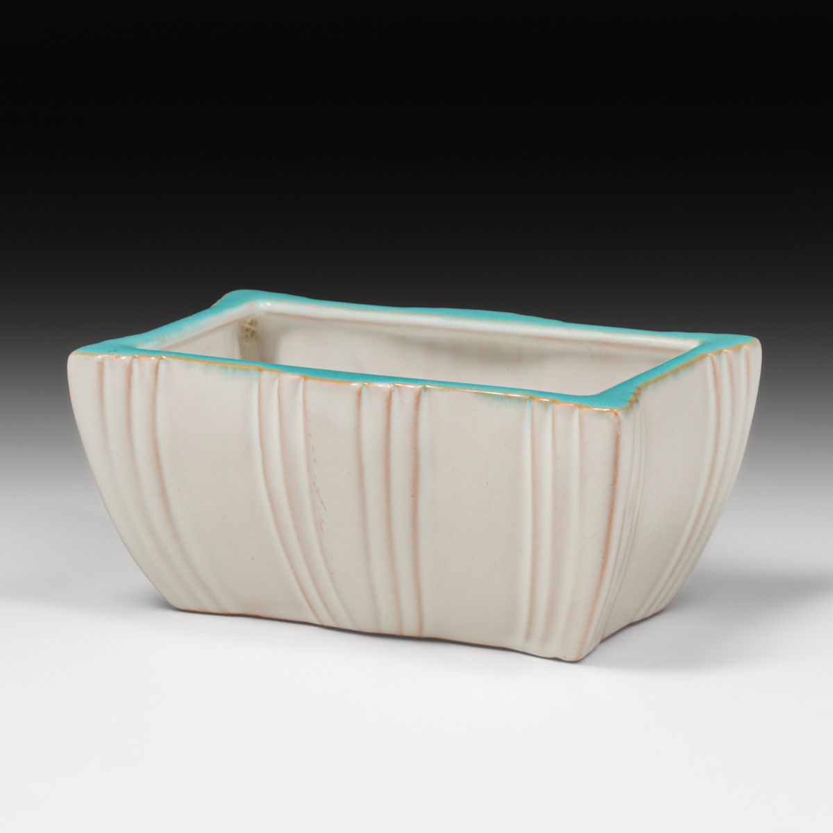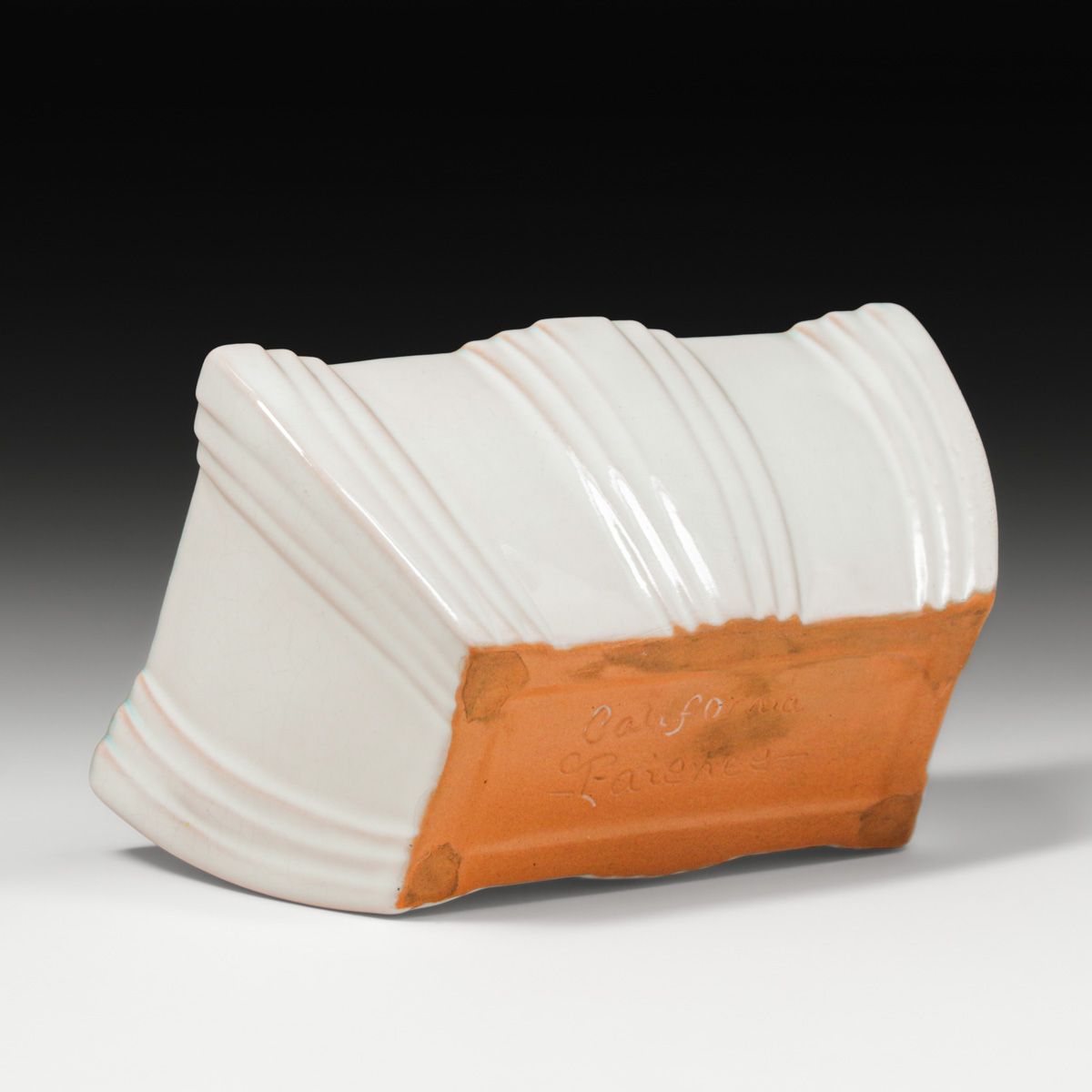 California Faience Square Ribbed Vase c1920s. Signed. Perfect condition. 3"h x 6.75"w x 4" d
