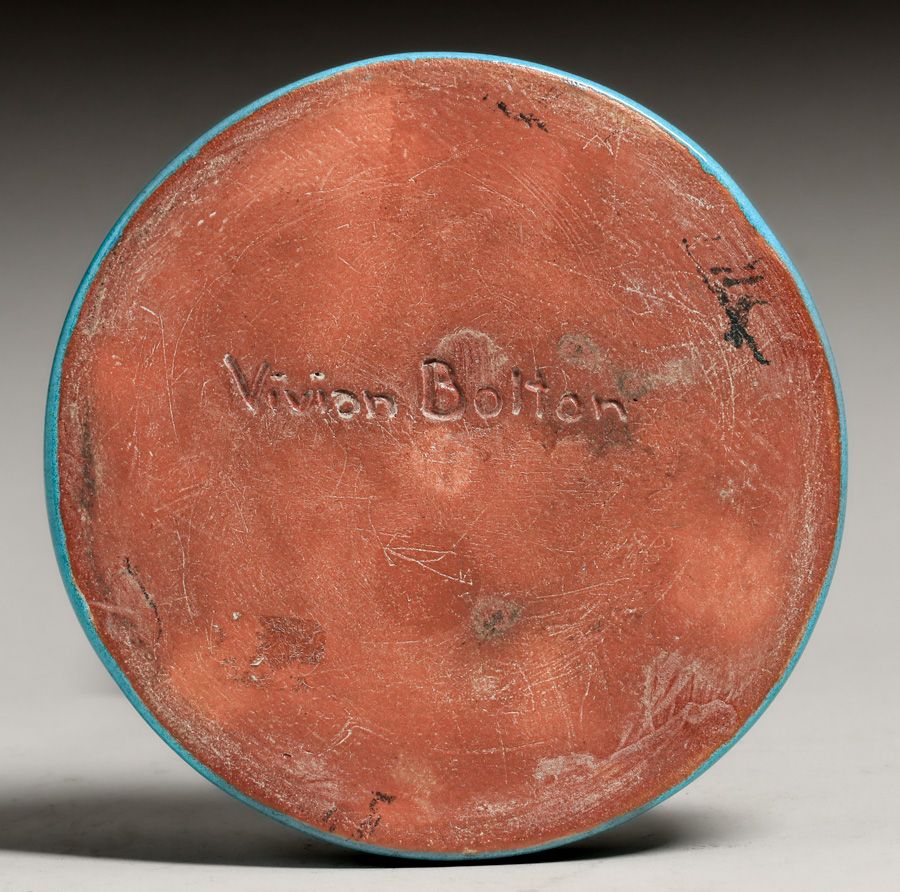 California Faience Student Tile Vivian Bolton c1930s. Signed. Perfect condition. 5.5"d SOLD