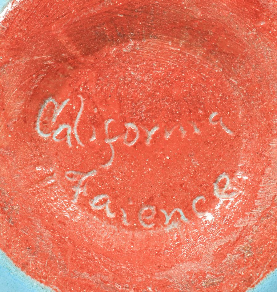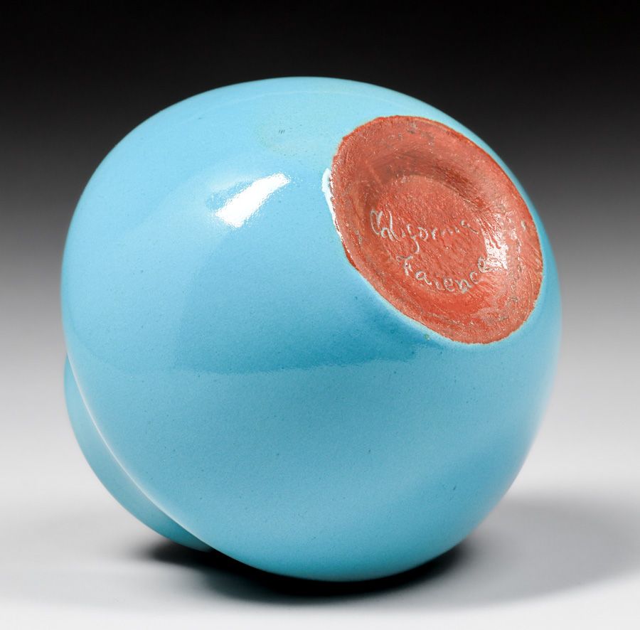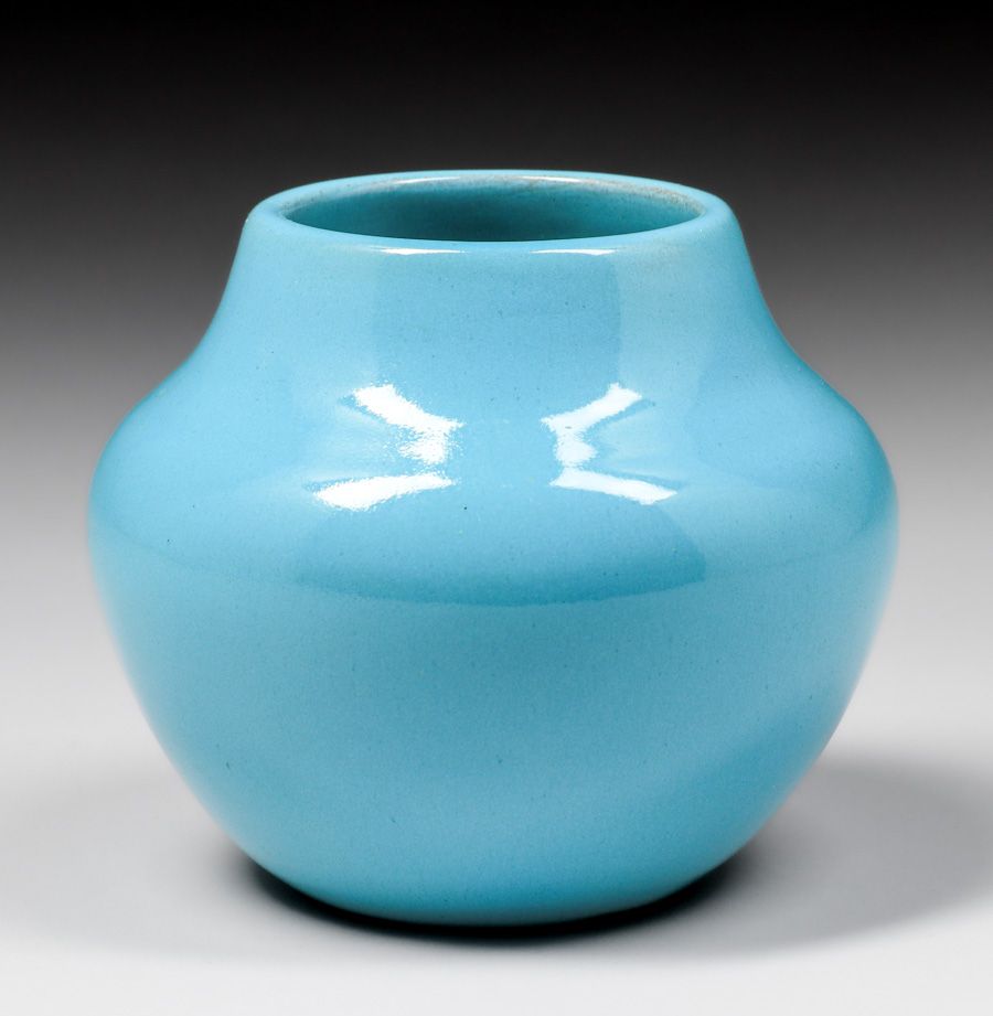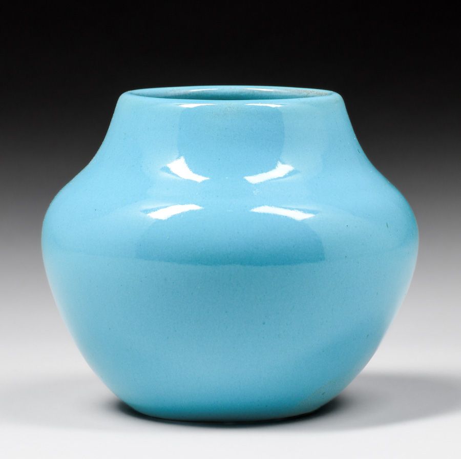 California Faience Turquoise Blue Vase c1920s. Signed. Perfect condition. 5"h x 5.5"d SOLD