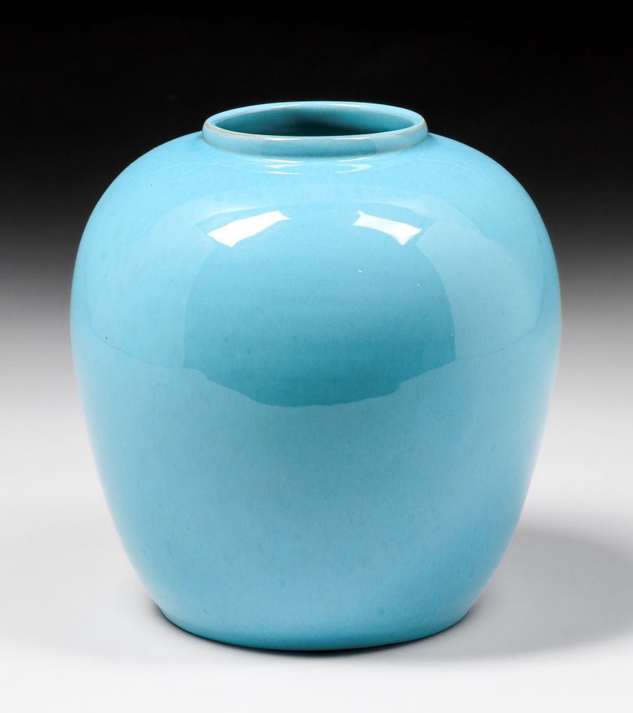 California Faience Turquoise Ginger Jar Shaped Vase c1920s. Signed. Perfect condition. 8"h x 7"d SOLD