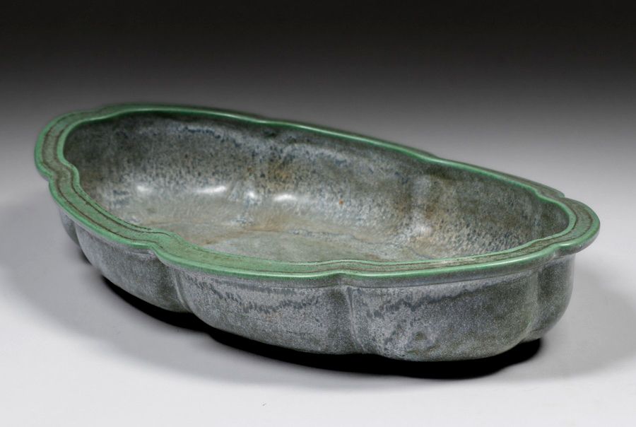 California Porcelain Micro-Crystalline Green Fruit Bowl c1927. Signed. Perfect condition. 13.25 x 8.5 x 2.75h inches SOLD