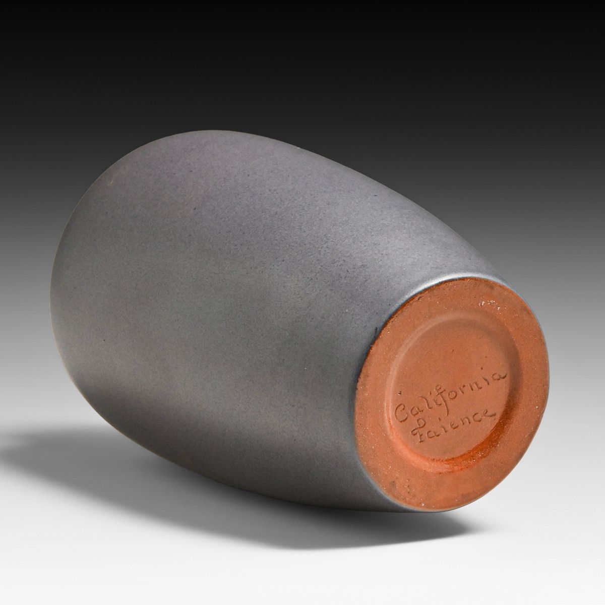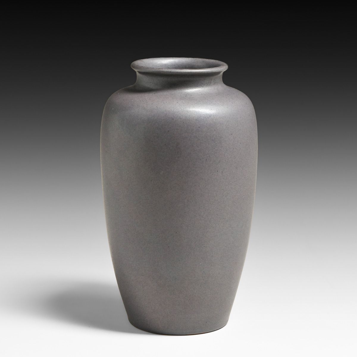 Early California Faience Matte Purple Vase c1915-1920. Signed. Perfect condition. 7 7/8"h x 4.25"d