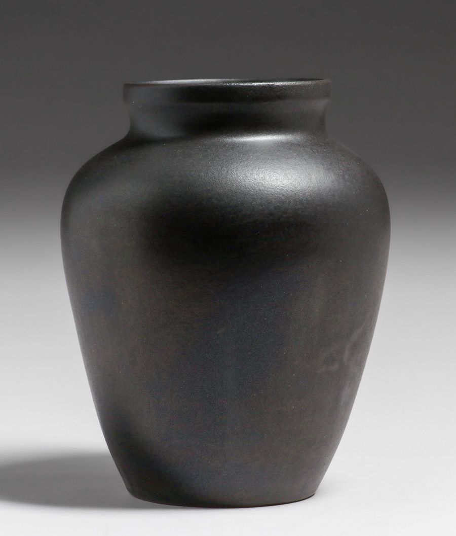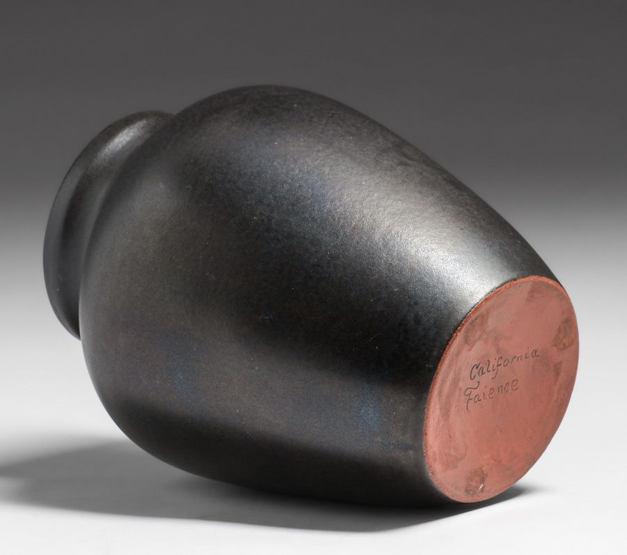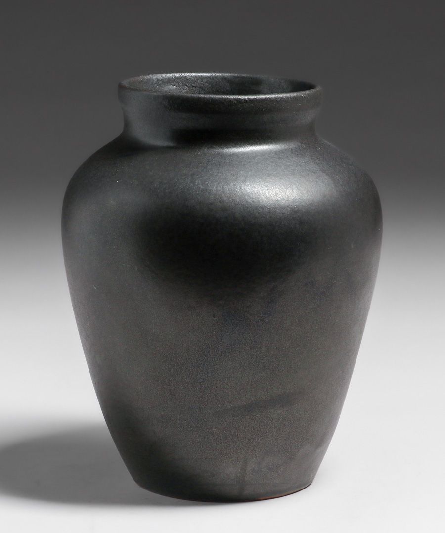 Large California Faience Matte Black Vase c1920. Signed. Perfect condition. 10.5"h x 7.5"d SOLD