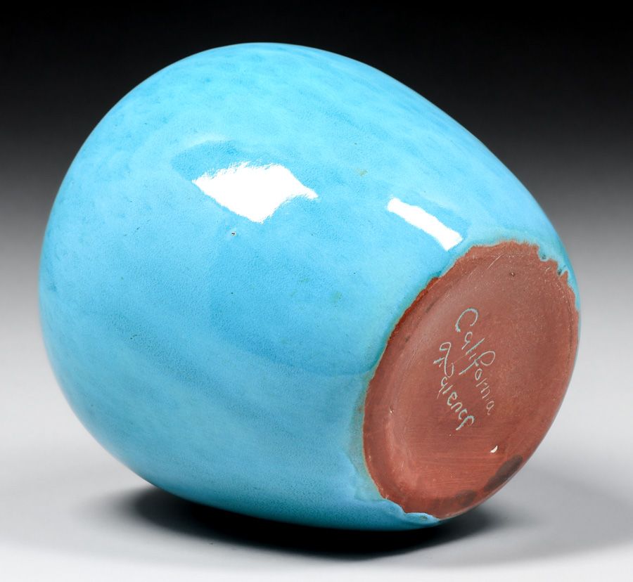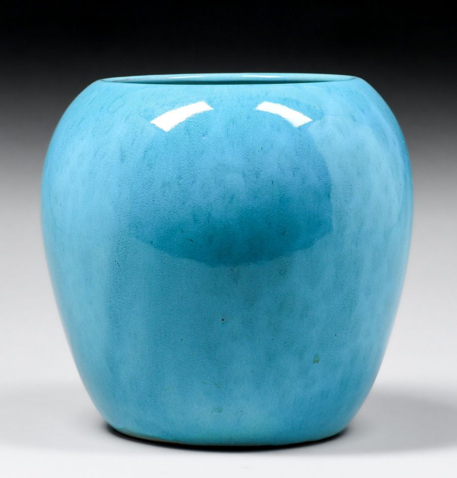 - Large California Faience Turquoise Bulbous Vase c1920s