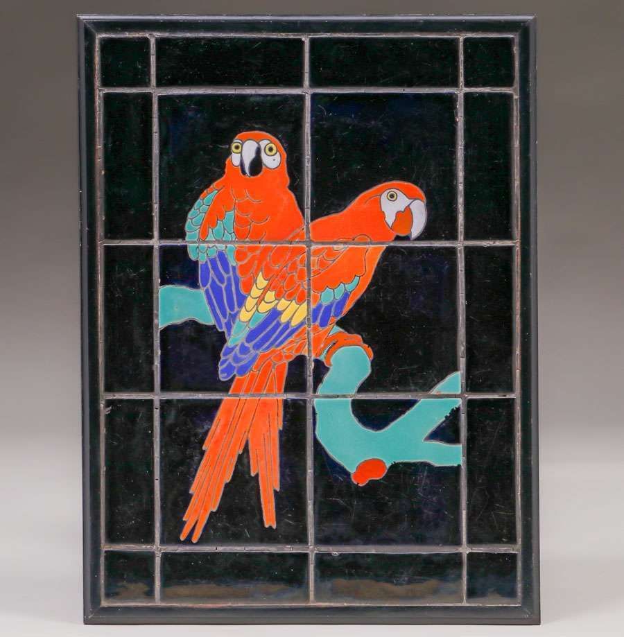 Catalina Island Parrot Tile-Top Wrought Iron Table c1930s. Some surface scratches to tiles otherwise excellent condition. One of the best examples of this classic form with the rare black border and super crisp execution. 24" x 18" x 19.5"h SOLD