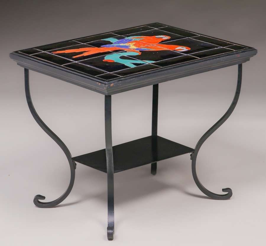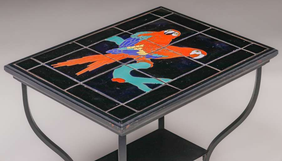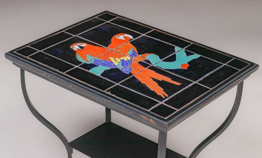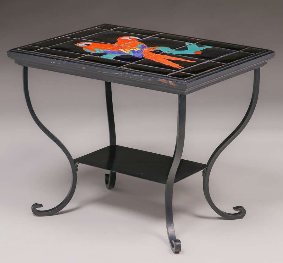 - Catalina Island Parrot Tile-Top Wrought Iron Table c1930s