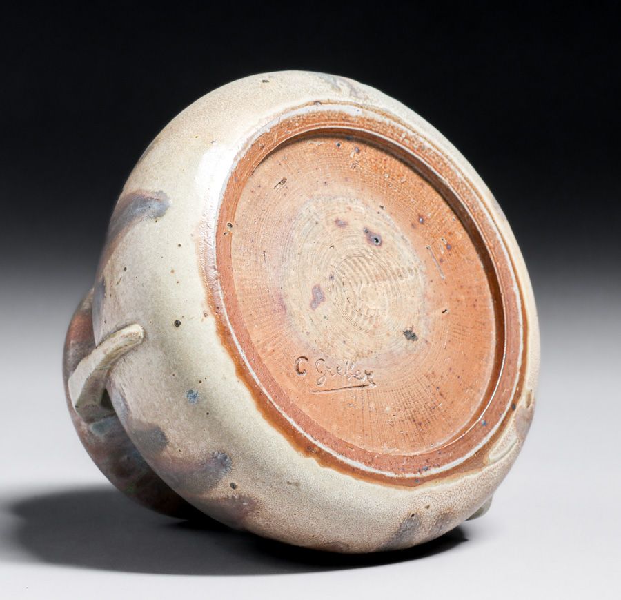 Charles Greber - French Three-Handled Vase c1890s. Signed. Perfect condition. 5.5"d x 4"h SOLD