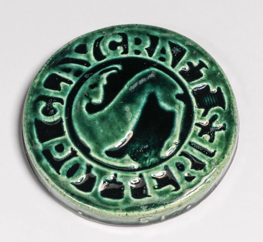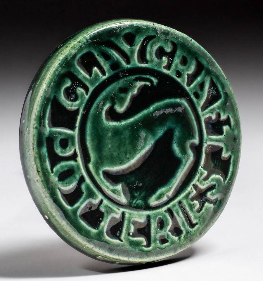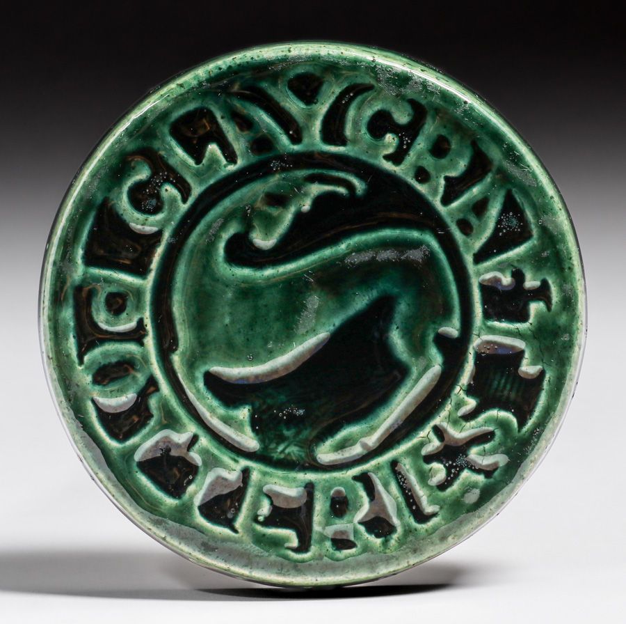 Claycraft Potteries – Los Angeles Advertising Tile c1920s. Signed. Perfect condition. 4 7/8"d $950
