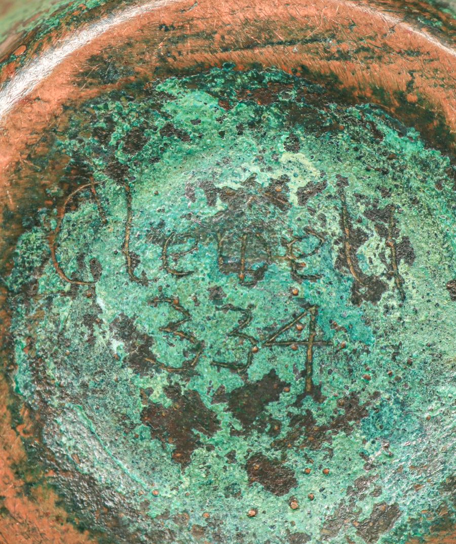Clewell #334 Copper-Clad Pottery Vase c1910. Signed. Excellent original patina. 5"h x 3"d SOLD