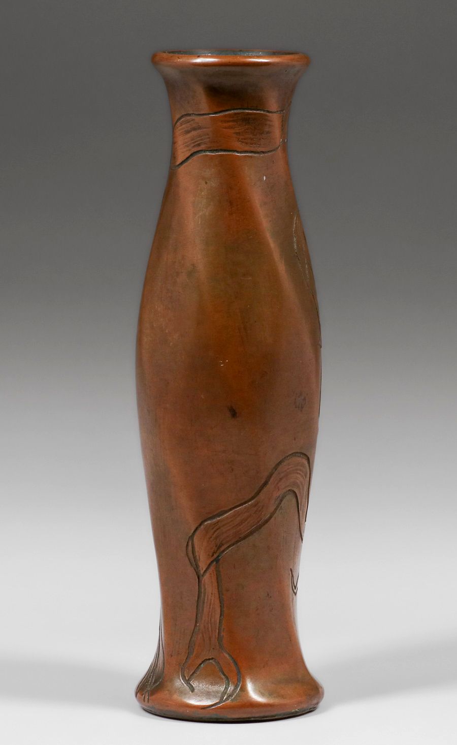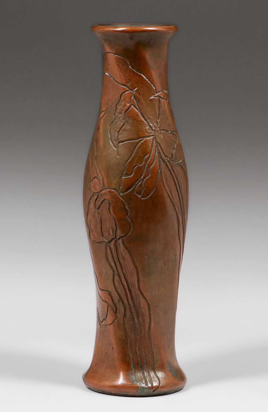Clewell Copper-Clad Owens Pottery Vase c1905. Unsigned. Excellent original patina. 13.5h x 4d inches SOLD