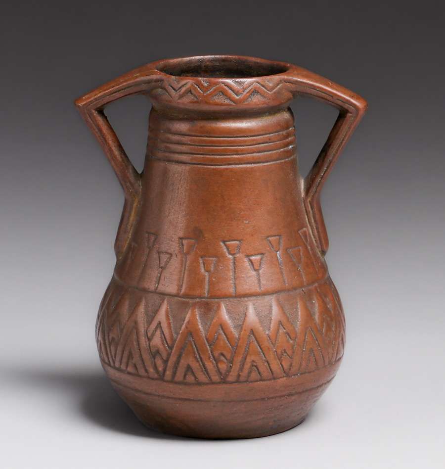 - Clewell Copper-Clad Owens Two-Handled Vase c1910