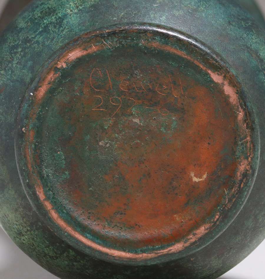 Clewell copper-clad pottery #292 ovoid shaped vase c1910. Signed. Excellent original patina. 9.75"h x 4"d SOLD