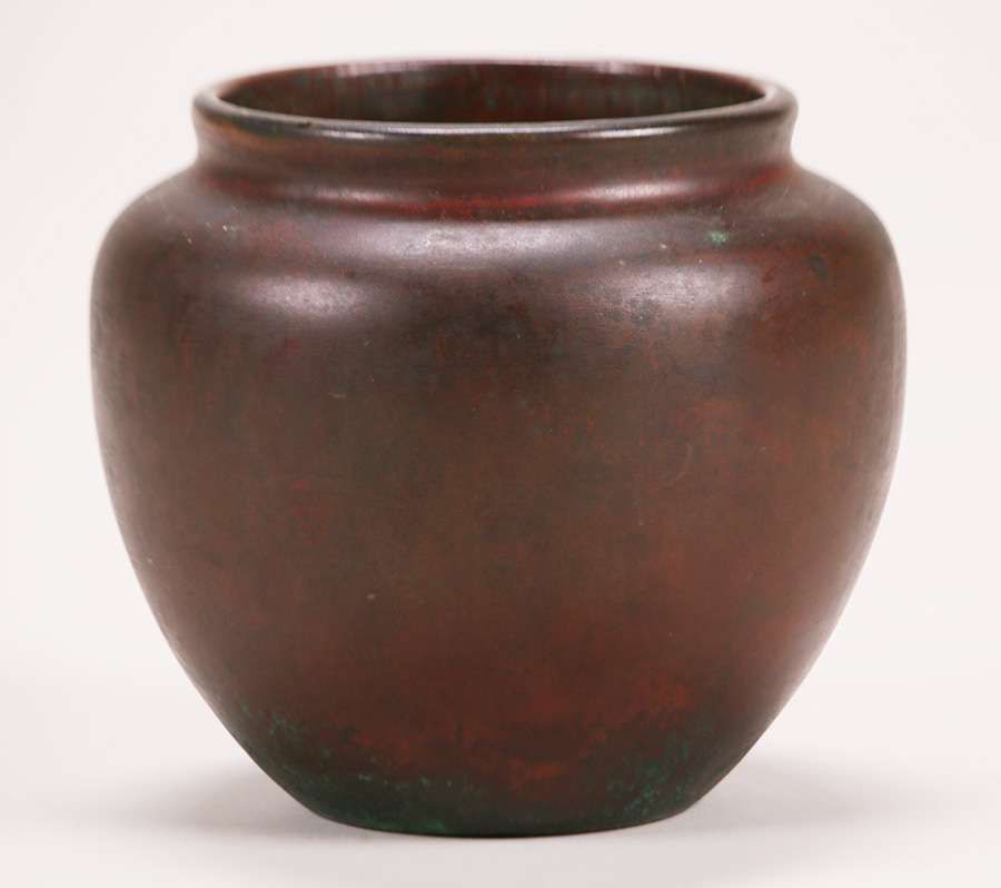 Clewell copper-clad vase. Excellent brown & green original patina. Signed. Perfect condition. 5.5"h x 5.75"d SOLD