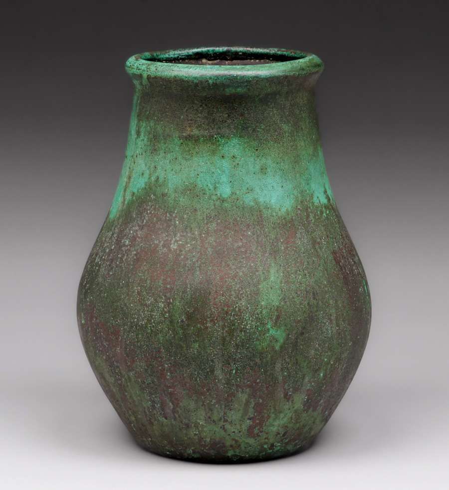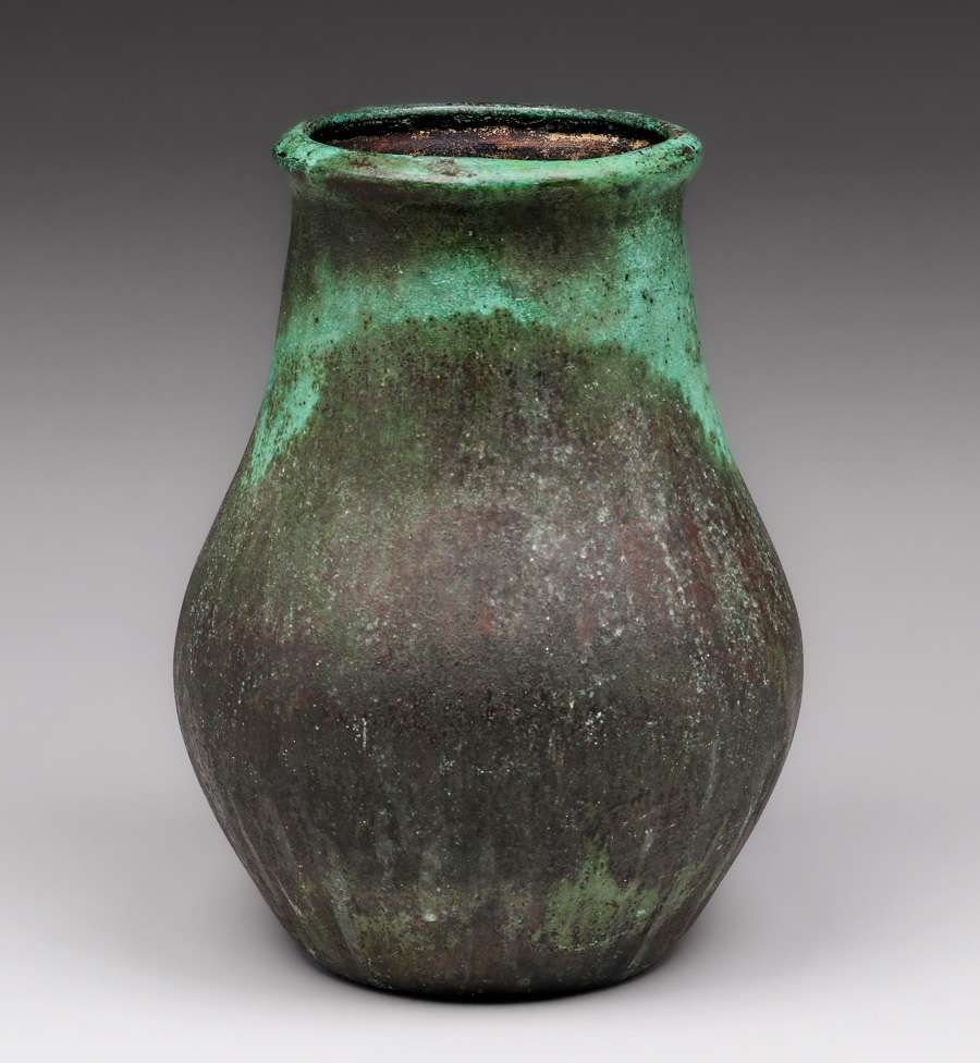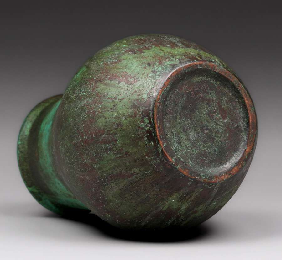 Clewell Copper-Clad Vase c1910. Signed. Excellent original black and green verdigris patina. 9.5”h x 6.5”d SOLD