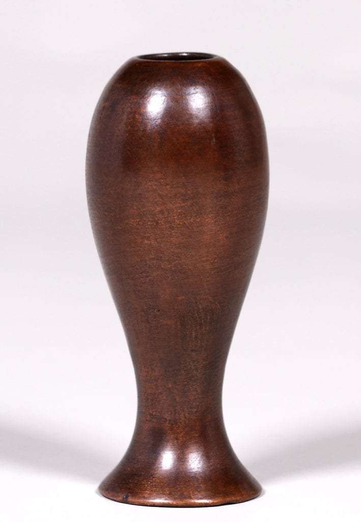 Clewell Pottery copper-clad vase c1915. Unsigned. Excellent new patina. 6.75"h x 2.75"d SOLD