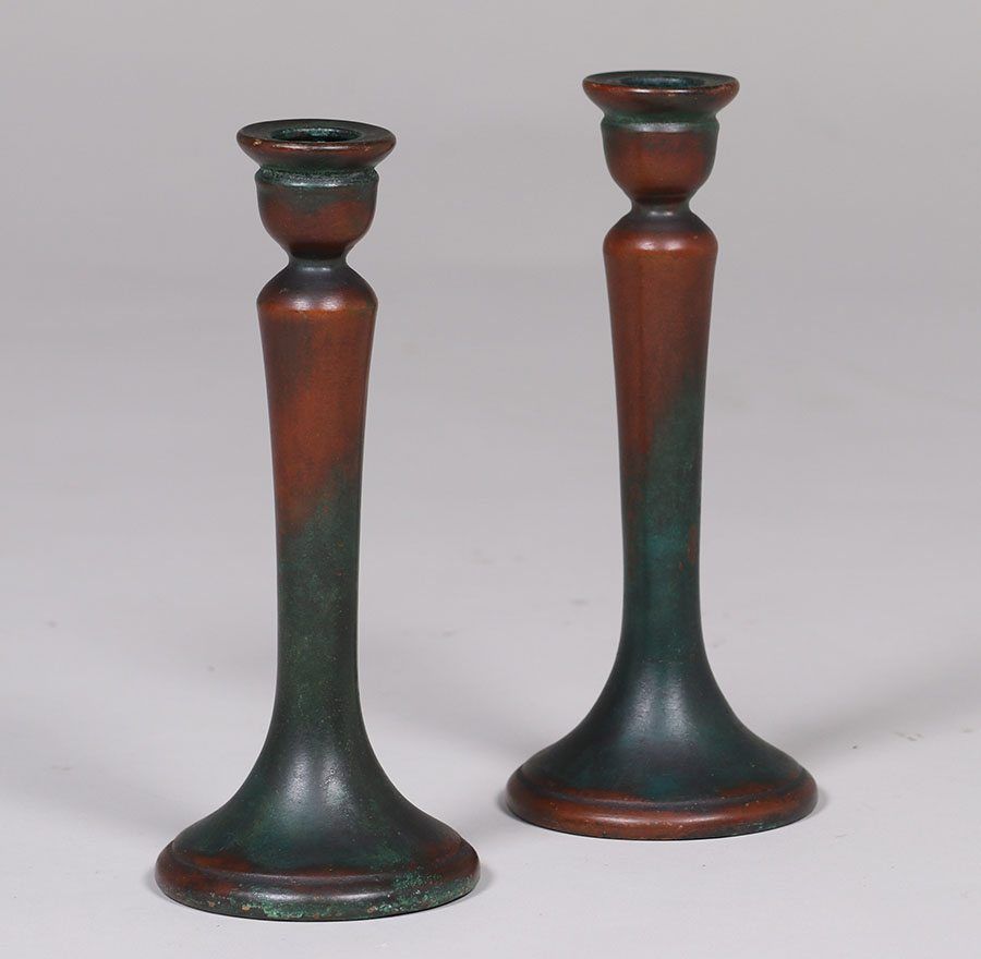 - Pair Clewell Copper-Clad Candlesticks
